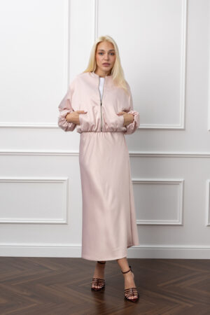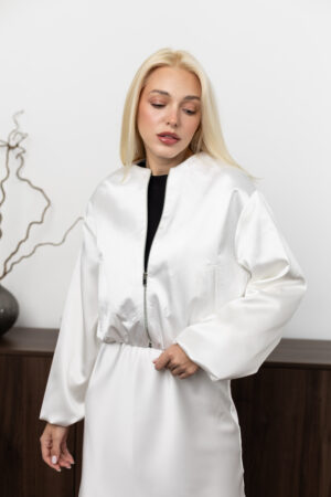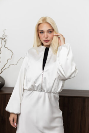 Атласний костюм молоко сукня та бомбер