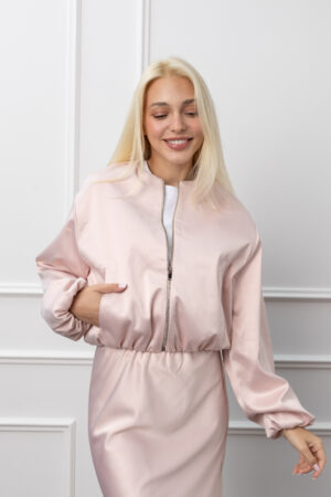 Атласний бомбер ніжно-рожевий