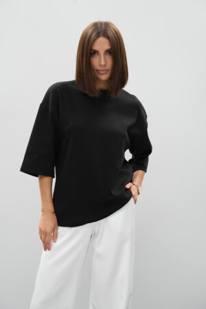 Чорна футболка оверсайз з подовженим рукавом