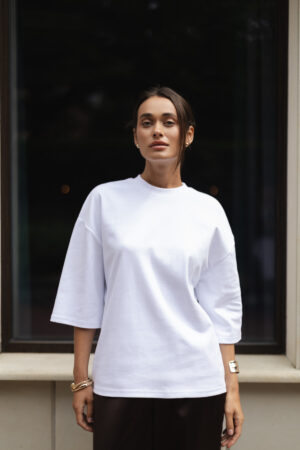 Біла футболка оверсайз з подовженим рукавом