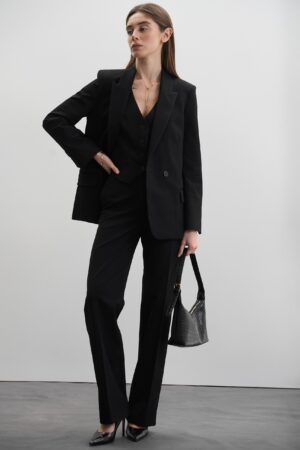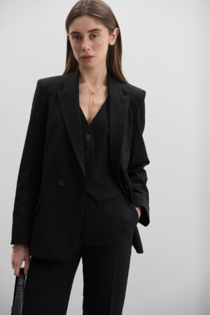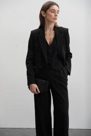 Костюм піджак двобортний + жилетка + штани палаццо чорний