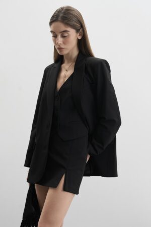 Трійка піджак однобортний + жилетка + спідниця-шорти чорна