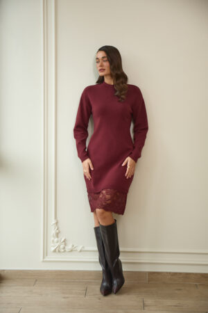 Сукня гладкої в’язки з мереживом у кольорі бургунді