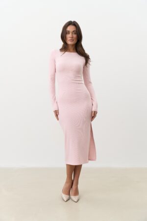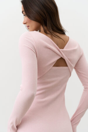 Трикотажна сукня з відкритою спиною ніжно-рожева