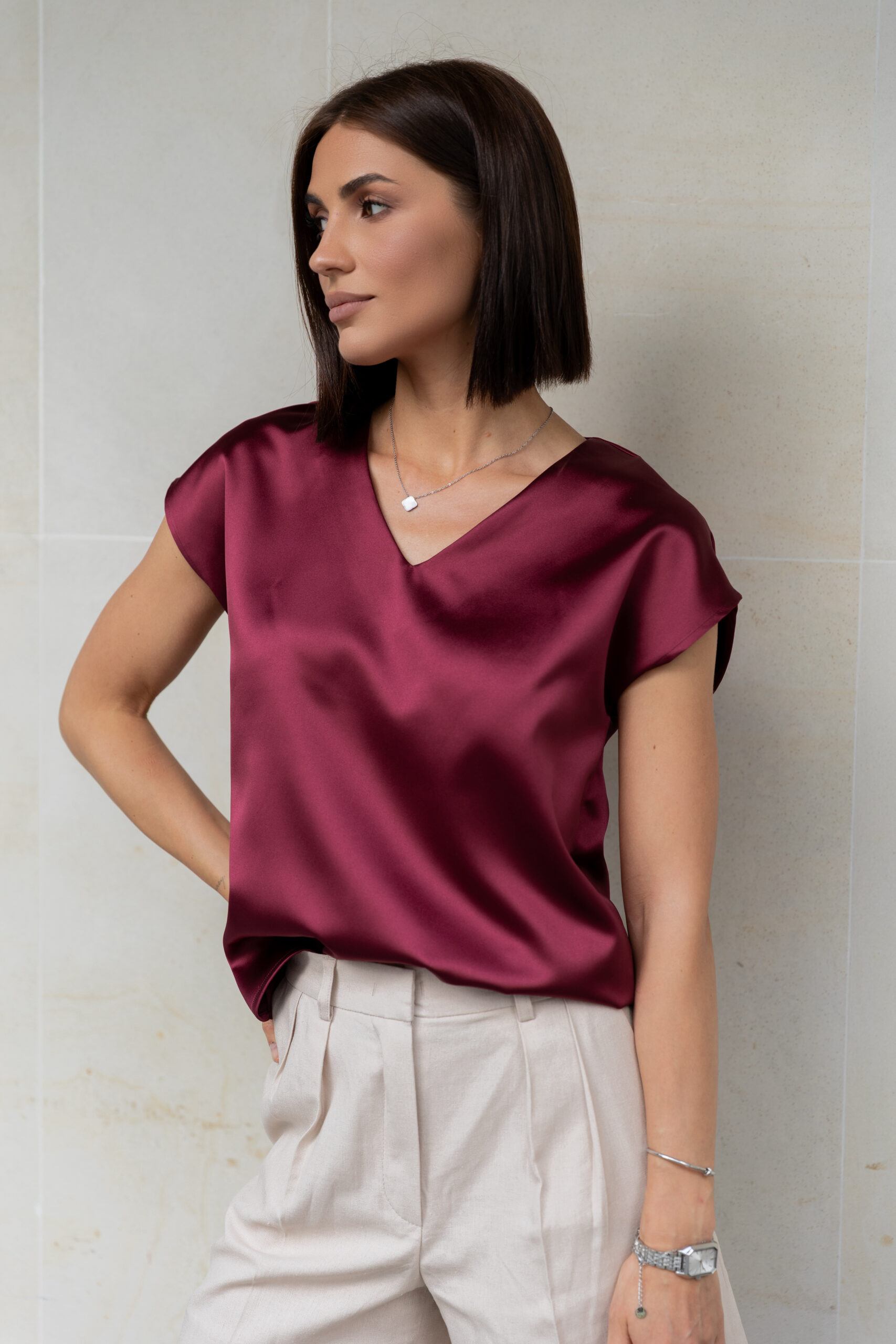 Атласна блуза кольору бургунді — розкіш, яка не потребує зайвих слів