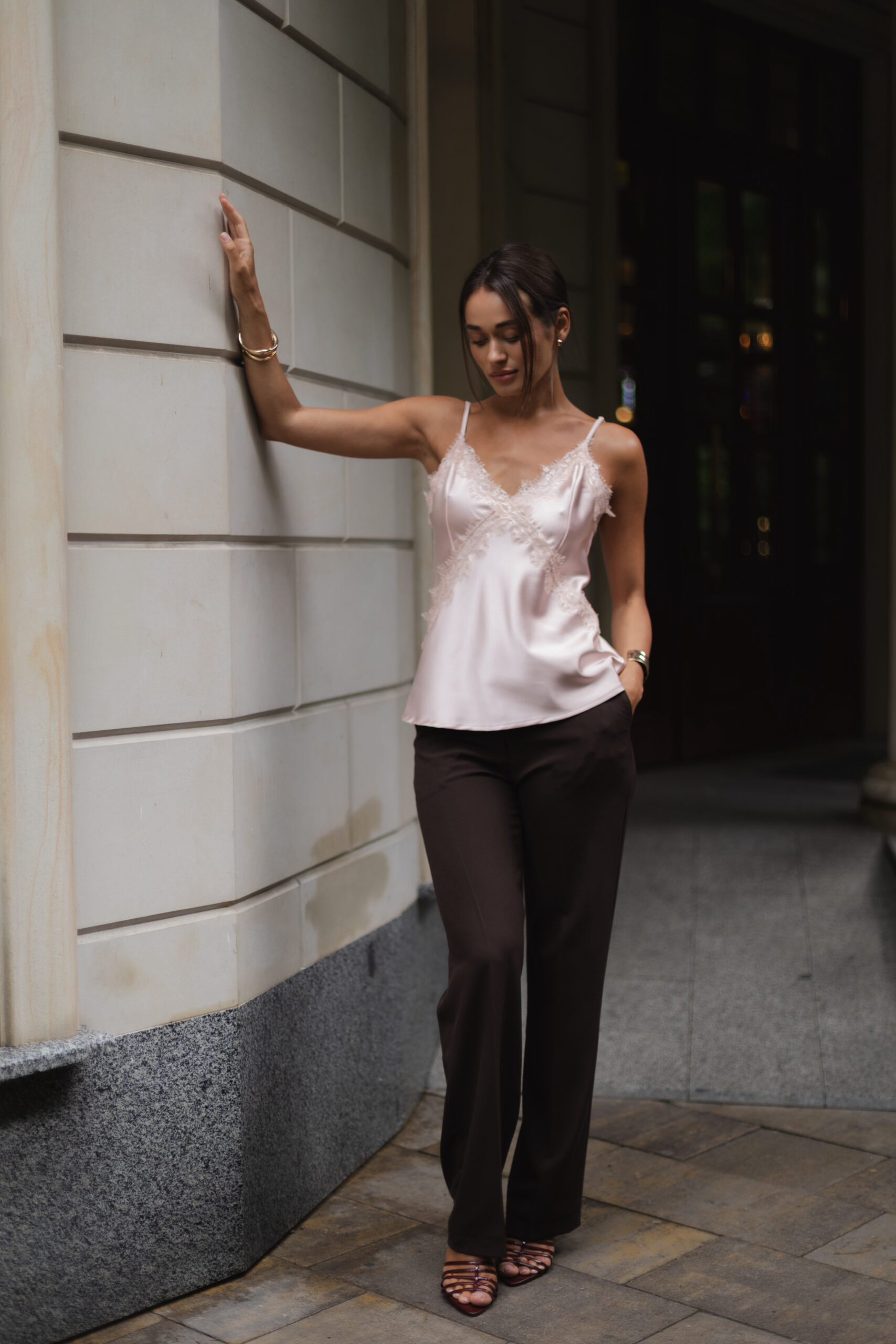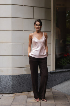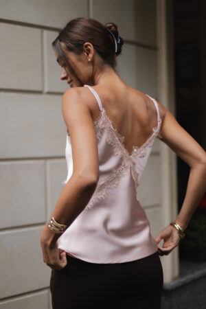 Ніжно-рожева атласна майка з мереживом — жіночність у чистому вигляді