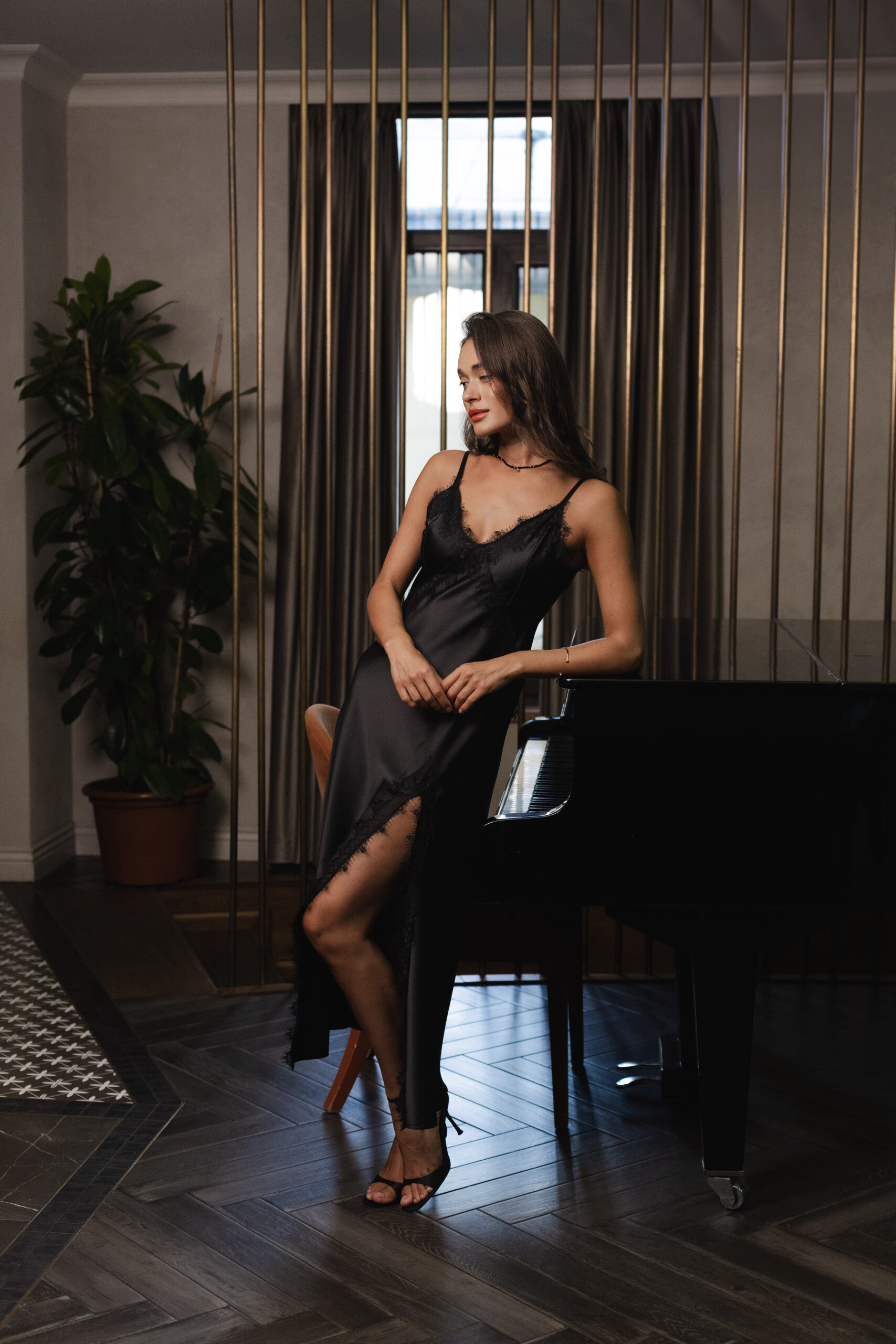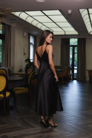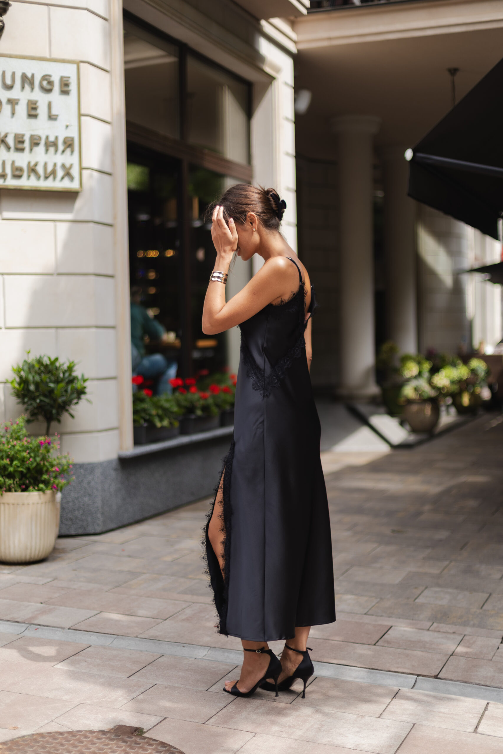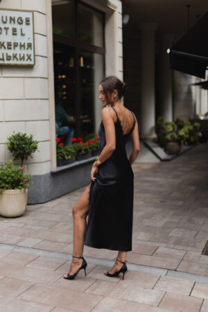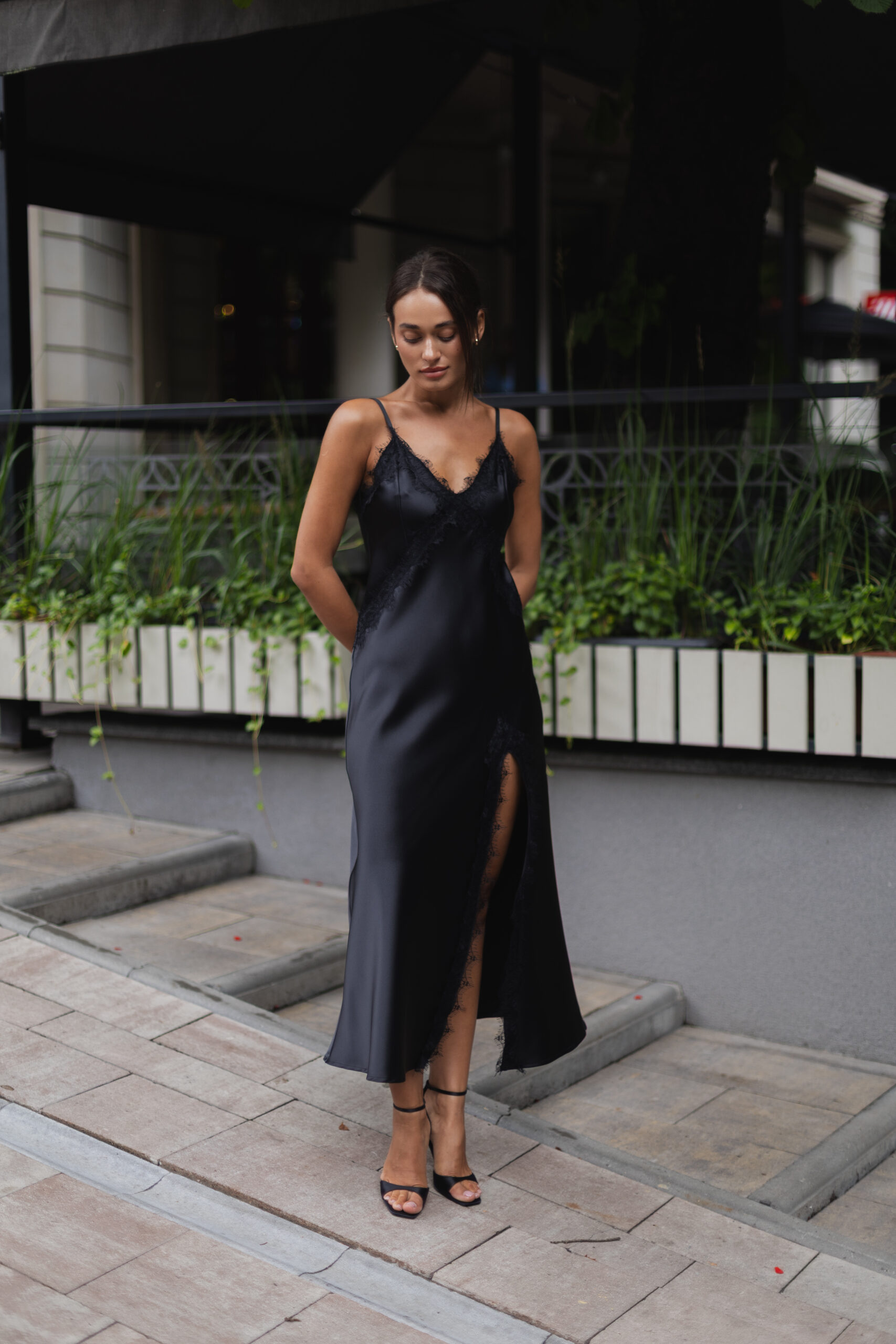 Чорна атласна сукня-комбінація — витонченість, яка не потребує слів