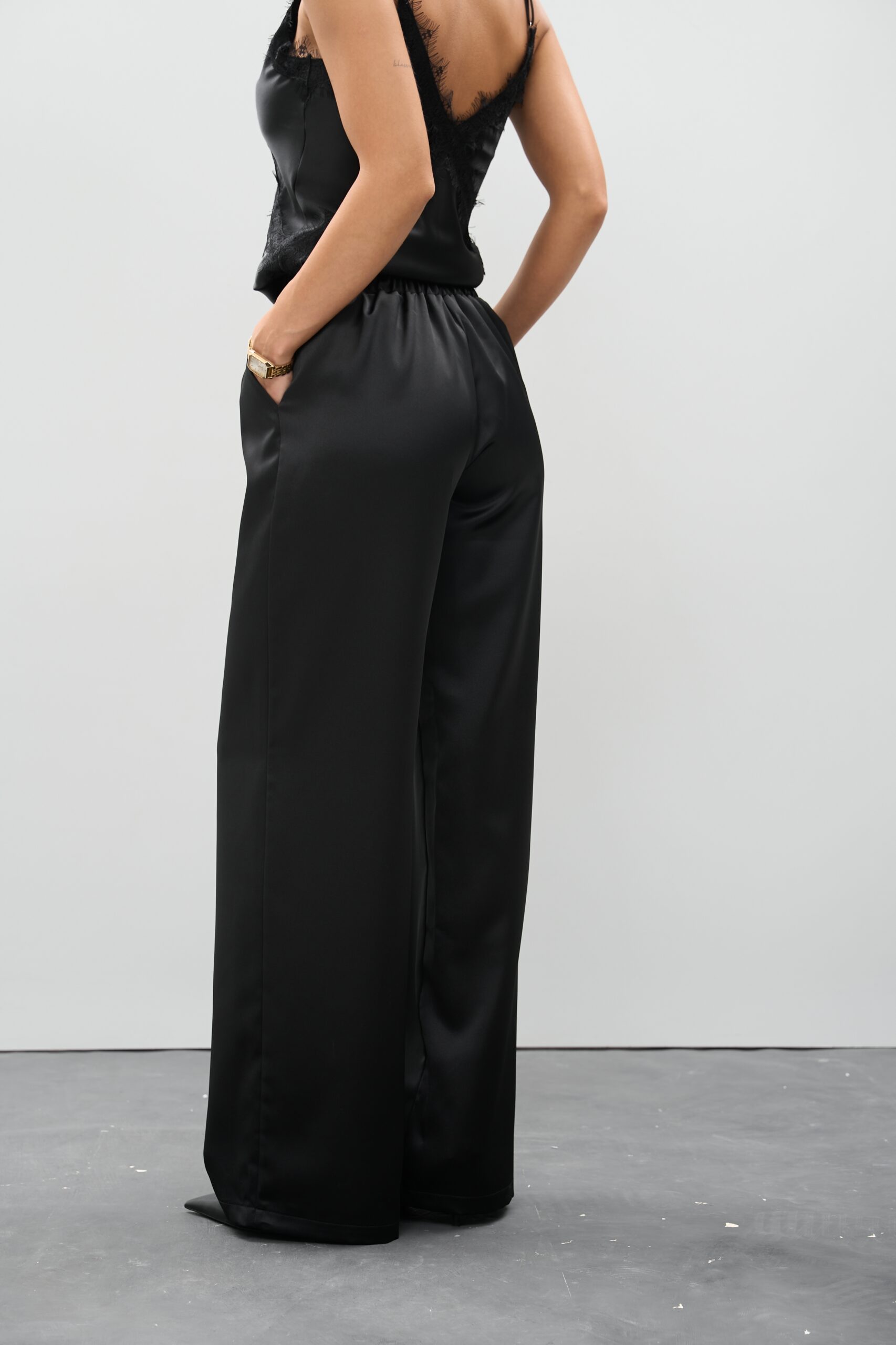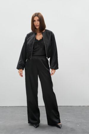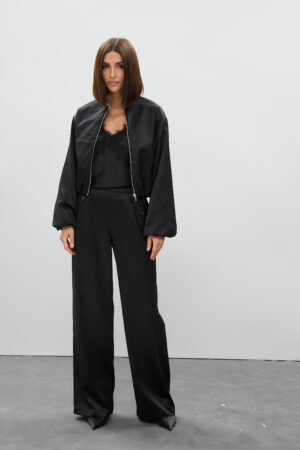 Атласні штани палаццо чорного кольору — позачасова елегантність, легкість та універсальність