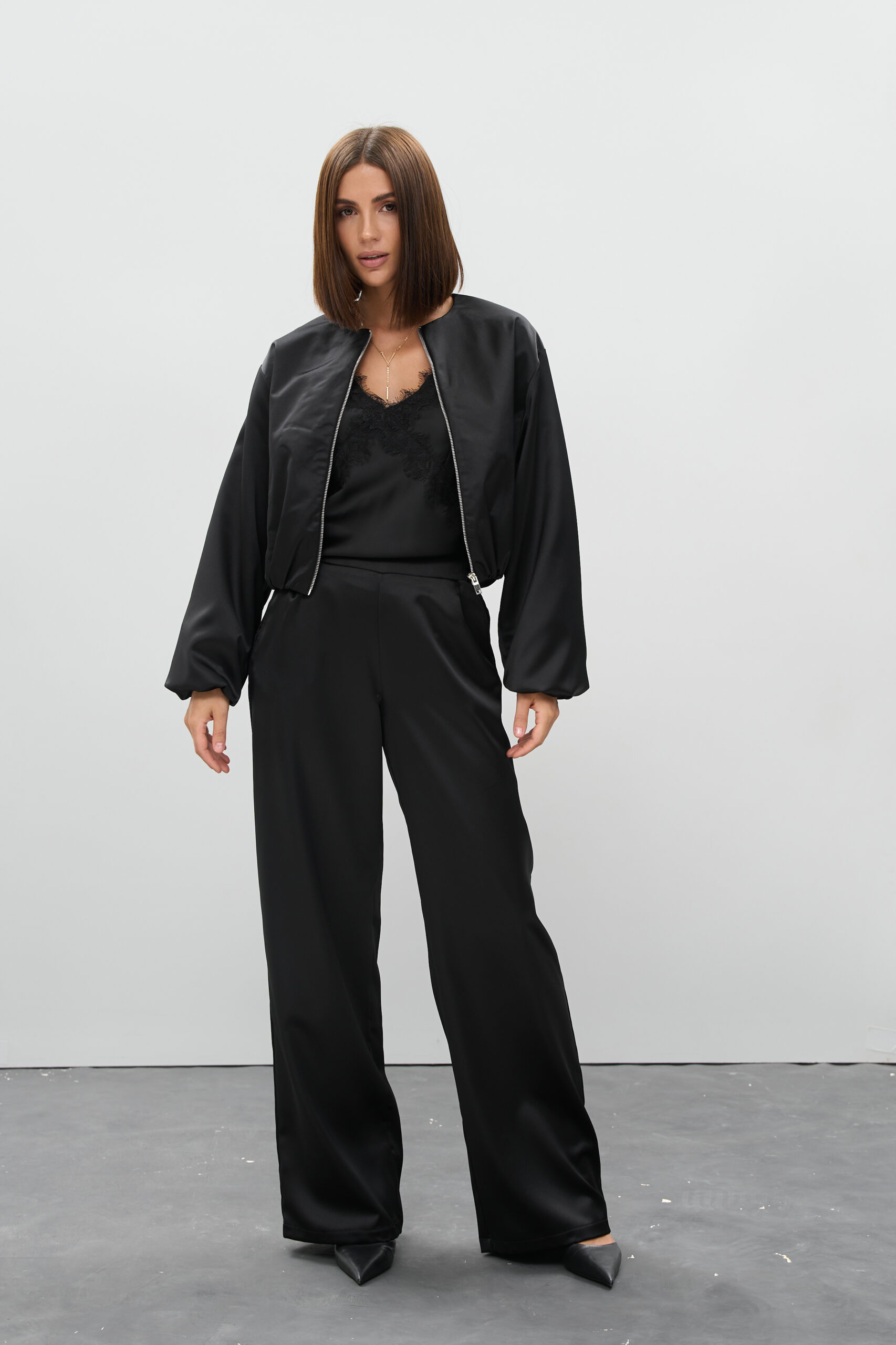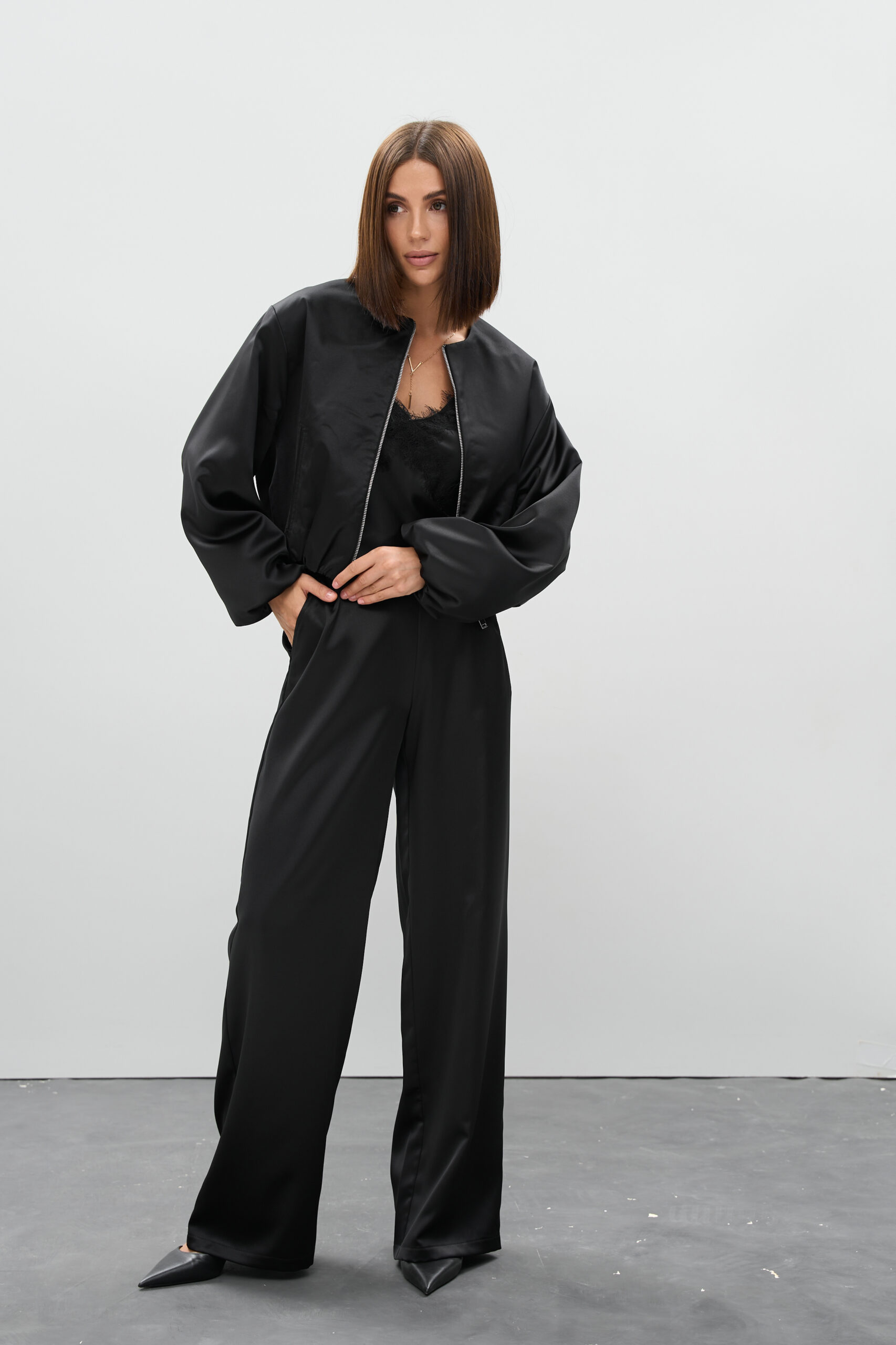 Чорний — безпрограшна класика. У поєднанні з атласною фактурою він набуває особливої глибини та вишуканості. Це колір, який підходить усім, поєднується з будь-якою палітрою і доречний у будь-який час.