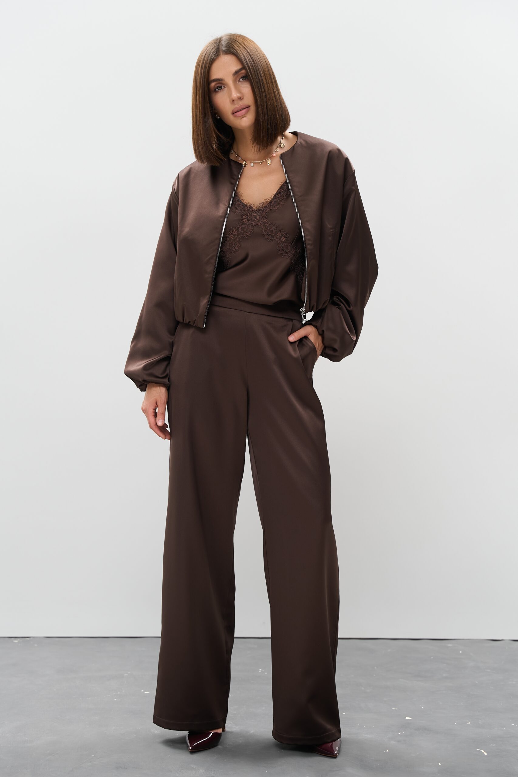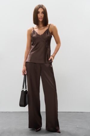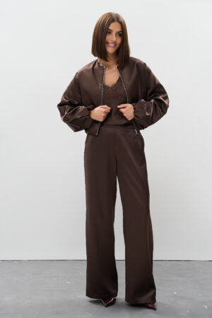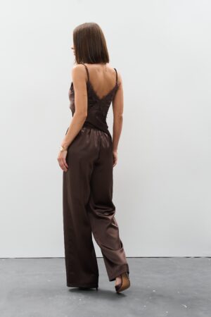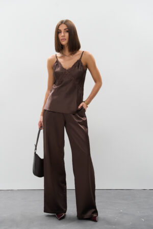 Жіночі атласні штани палаццо шоколад: тренд, який залишиться надовго