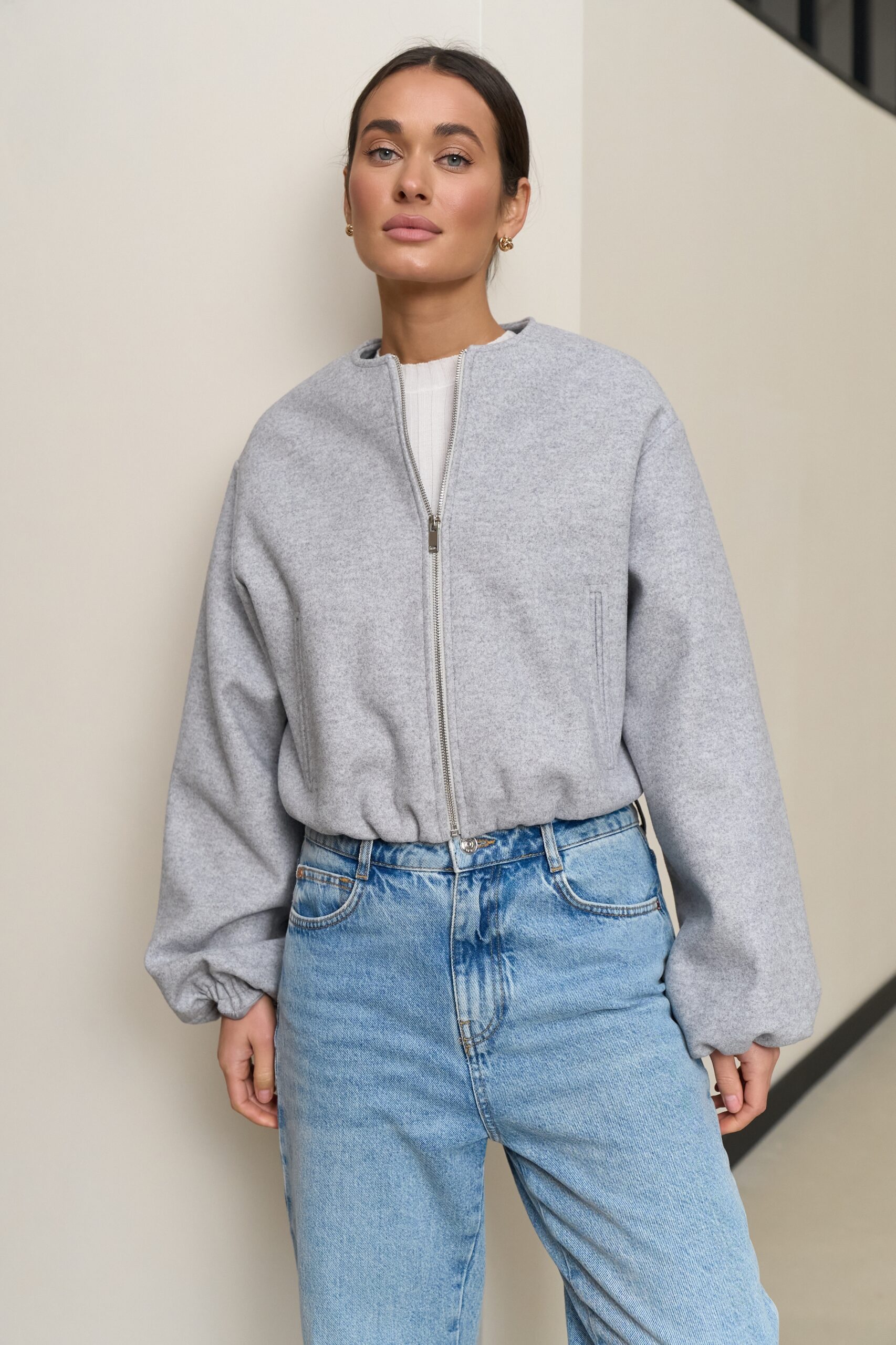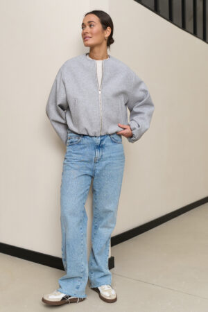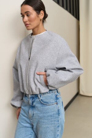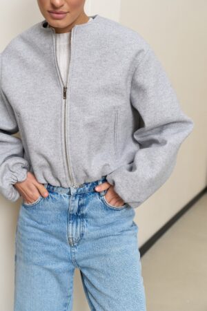 Цей бомбер з акцентними рукавами — універсальний та стильний елемент для будь-якого образу. Легкий для комбінування з іншими речами, а прямий крій з пишними рукавами додає елегантності і сучасного вигляду. Завдяки спущеній лінії плеча та резинкам на рукавах і низу, бомбер виглядає модно і створює ефектний силует, який підходить як для повсякденних, так і для більш елегантних образів.