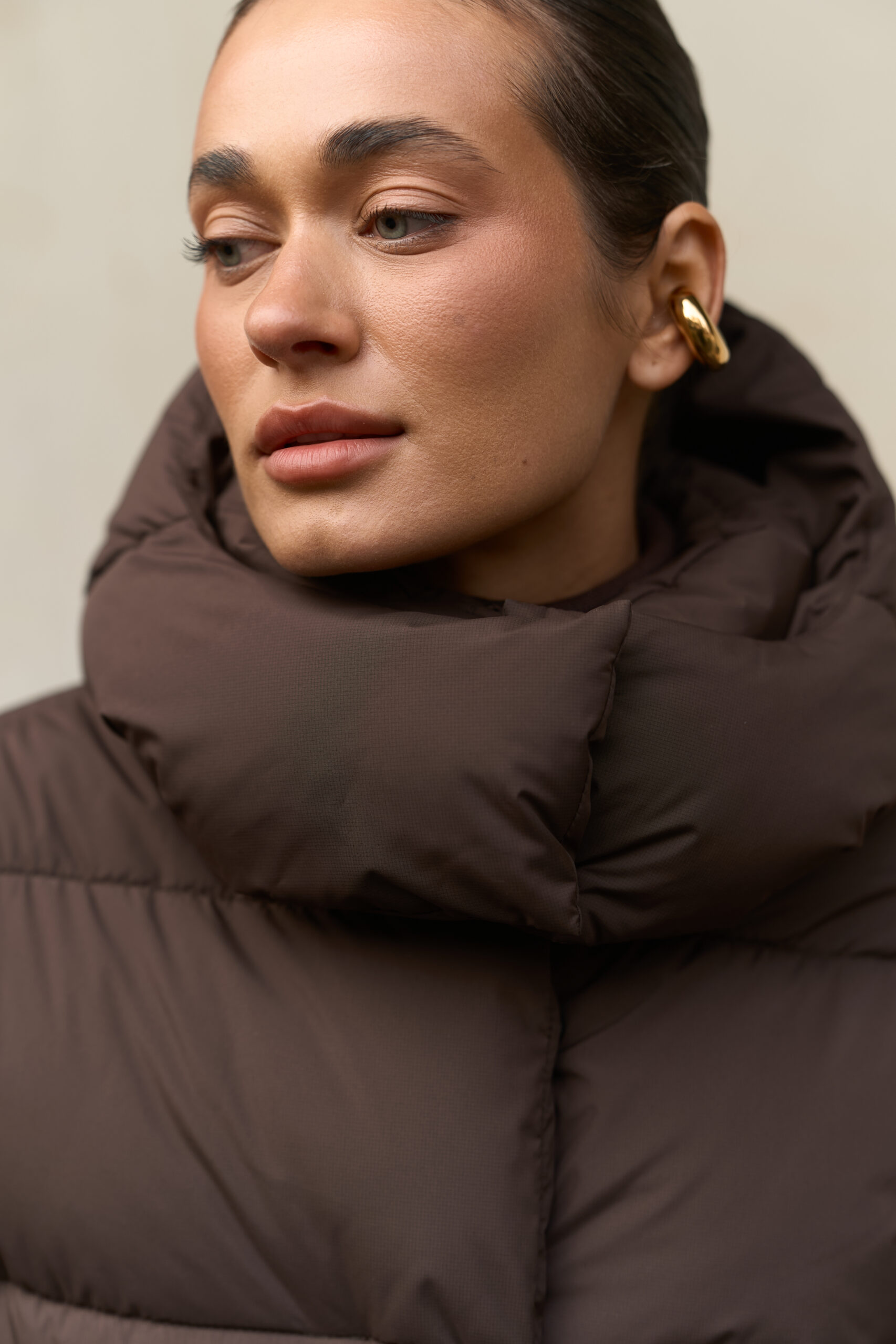 Шоколадний колір надає пуховику благородності, робить образ теплішим, стильним та довершеним. Це колір, який виглядає дорого та підкреслює індивідуальність. Він гармонійно поєднується з молочними, бежевими, чорними, сірими та карамельними відтінками, додаючи зимовим лукам м’якості та шарму. Такий варіант підходить для тих, хто хоче купити теплий жіночий пуховик з характером і витонченим кольором, що не виходить із моди.
