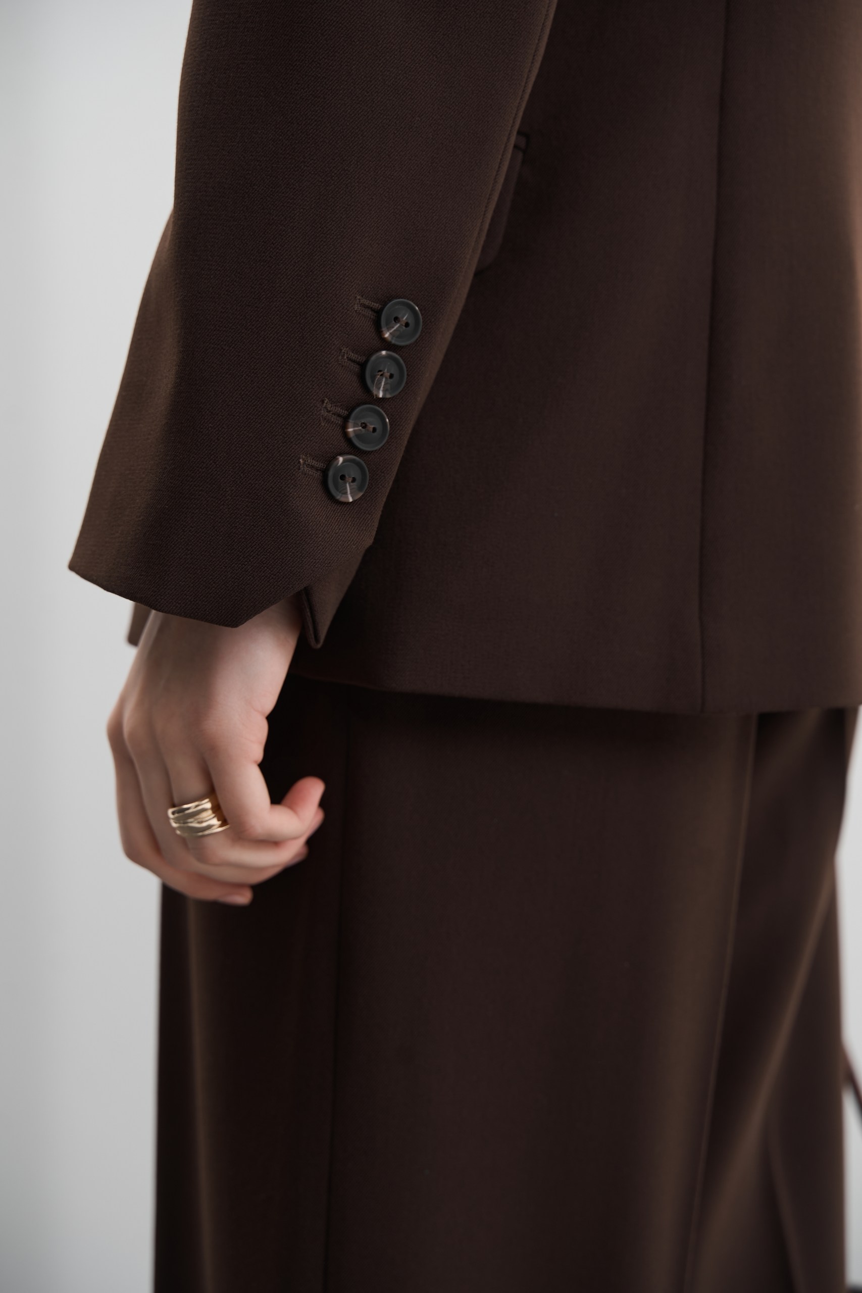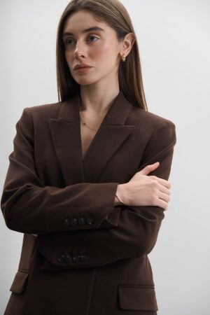 - Двобортний піджак: злегка приталений крій витончено підкреслює силует, створюючи жіночний образ. Завдяки своїй універсальності піджак чудово пасує як до комплекту зі штанами, так і до джинсів чи спідниці.