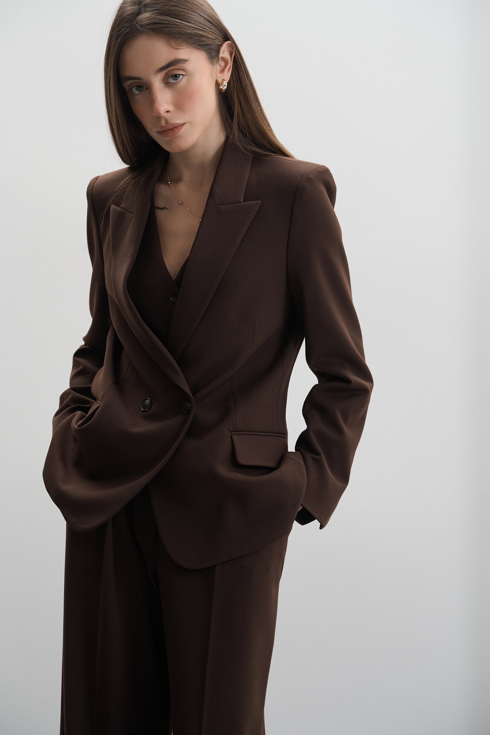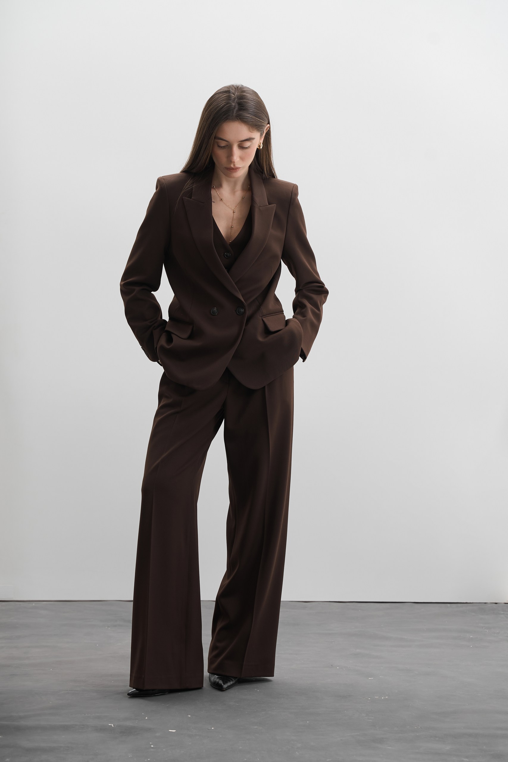 Зустрічайте костюм, який закохає вас з першого погляду. Наш елегантний комплект “Шоколад” – це чудове поєднання стилю, комфорту і якості. Він стане вашим улюбленим елементом гардероба, адже підходить як для важливих зустрічей, так і для прогулянок містом.