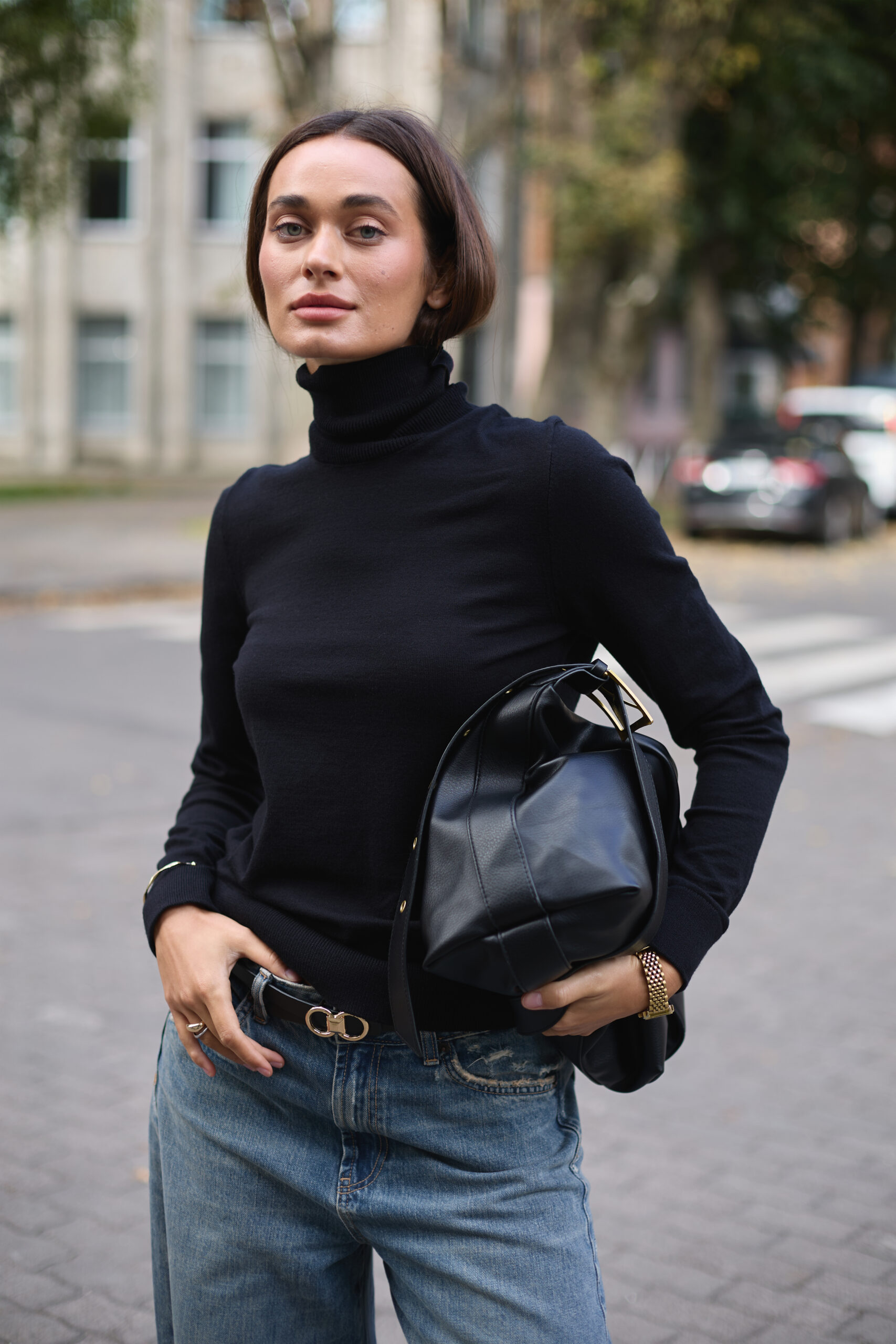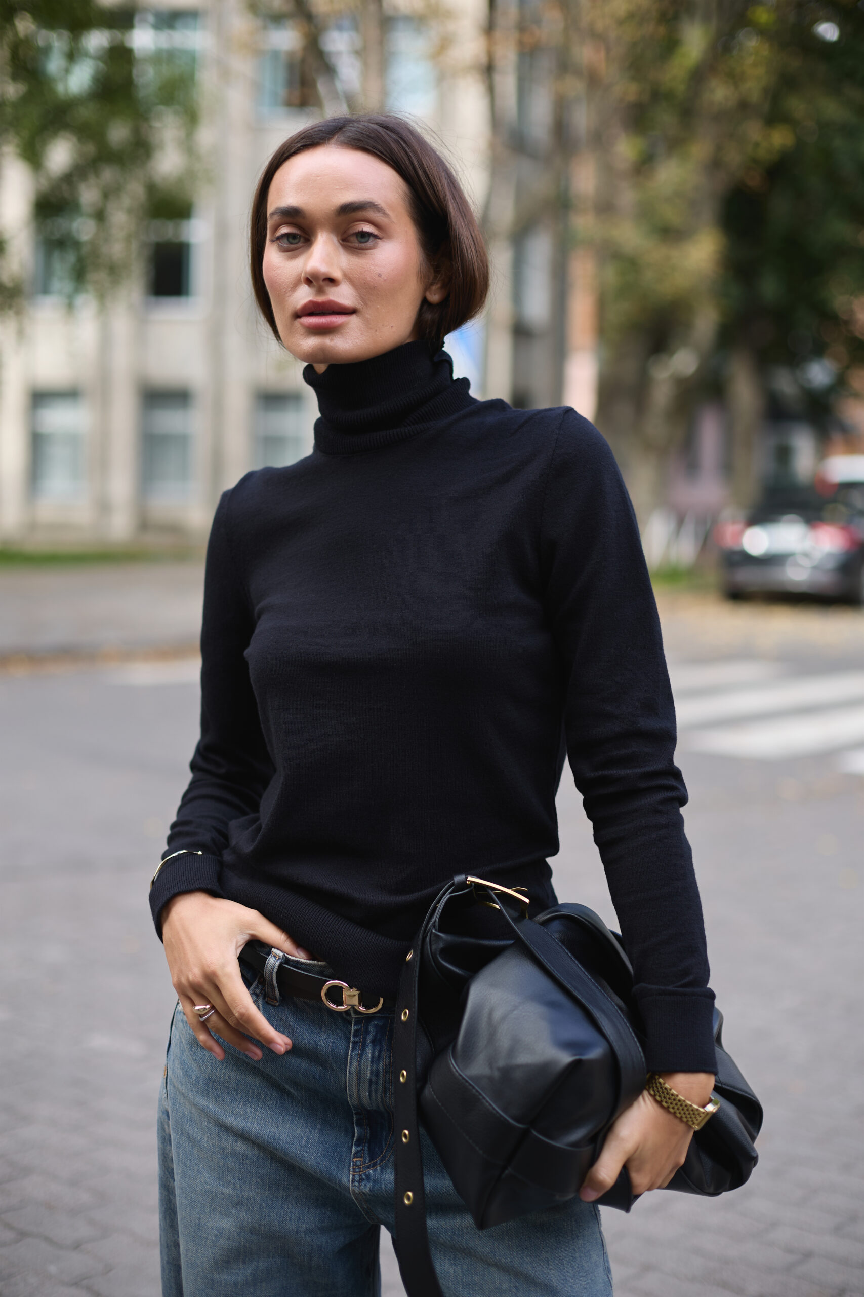 Чорний колір підкреслює лаконічність, універсальність і візуально стрункішить, роблячи гольф ідеальним вибором для будь-якого сезону та ситуації.