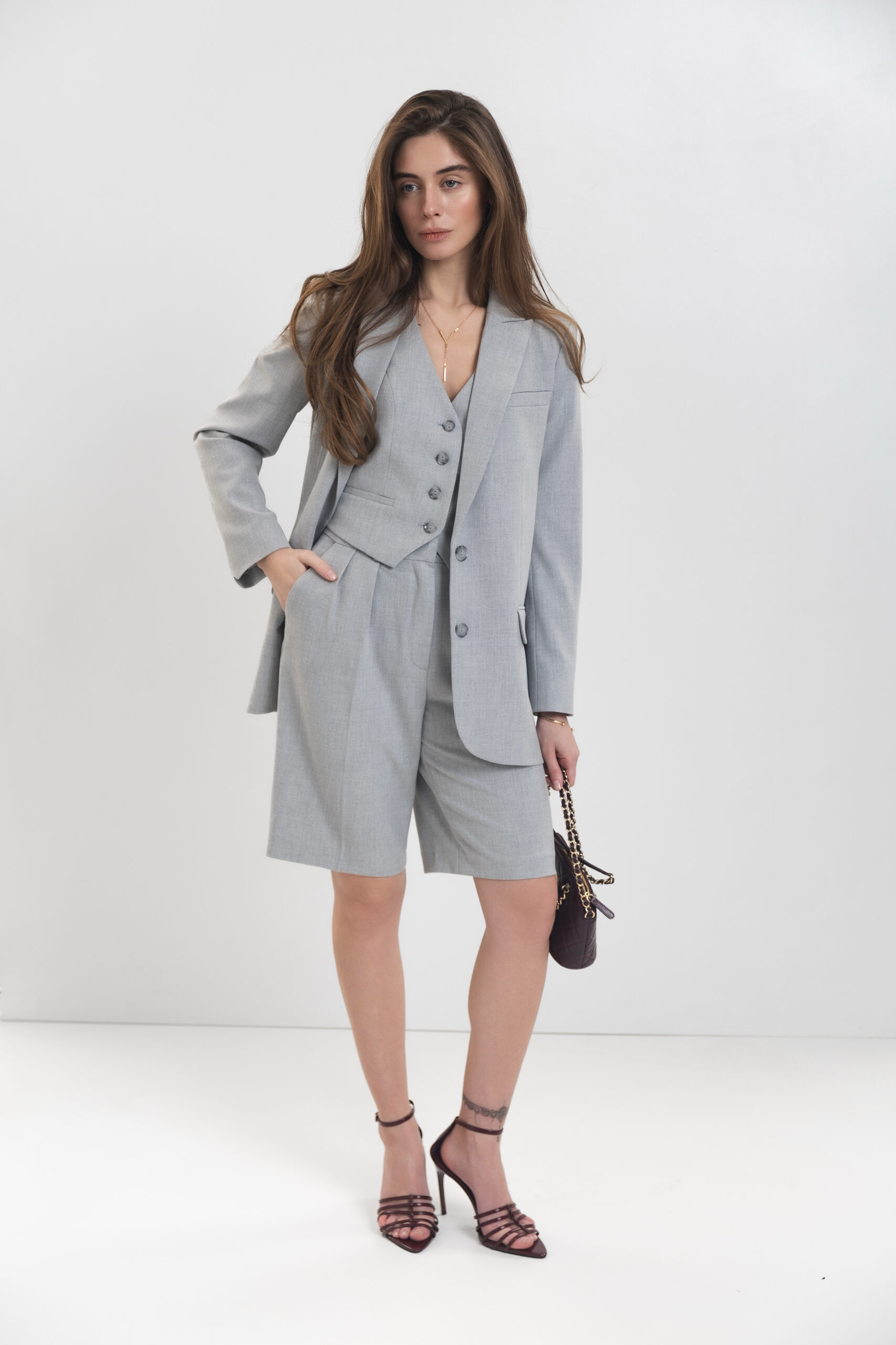 Світло-сірі бермуди — це не просто базова річ, а справжня основа для створення безлічі стильних образів. Ви можете поєднувати їх з класичними блузами, елегантними жакетами або легкими топами для створення повсякденного або більш формального образу. Вони також чудово виглядають в комплекті з футболками, стильними кедами чи сандалями, створюючи розслаблений, але вишуканий вигляд.
