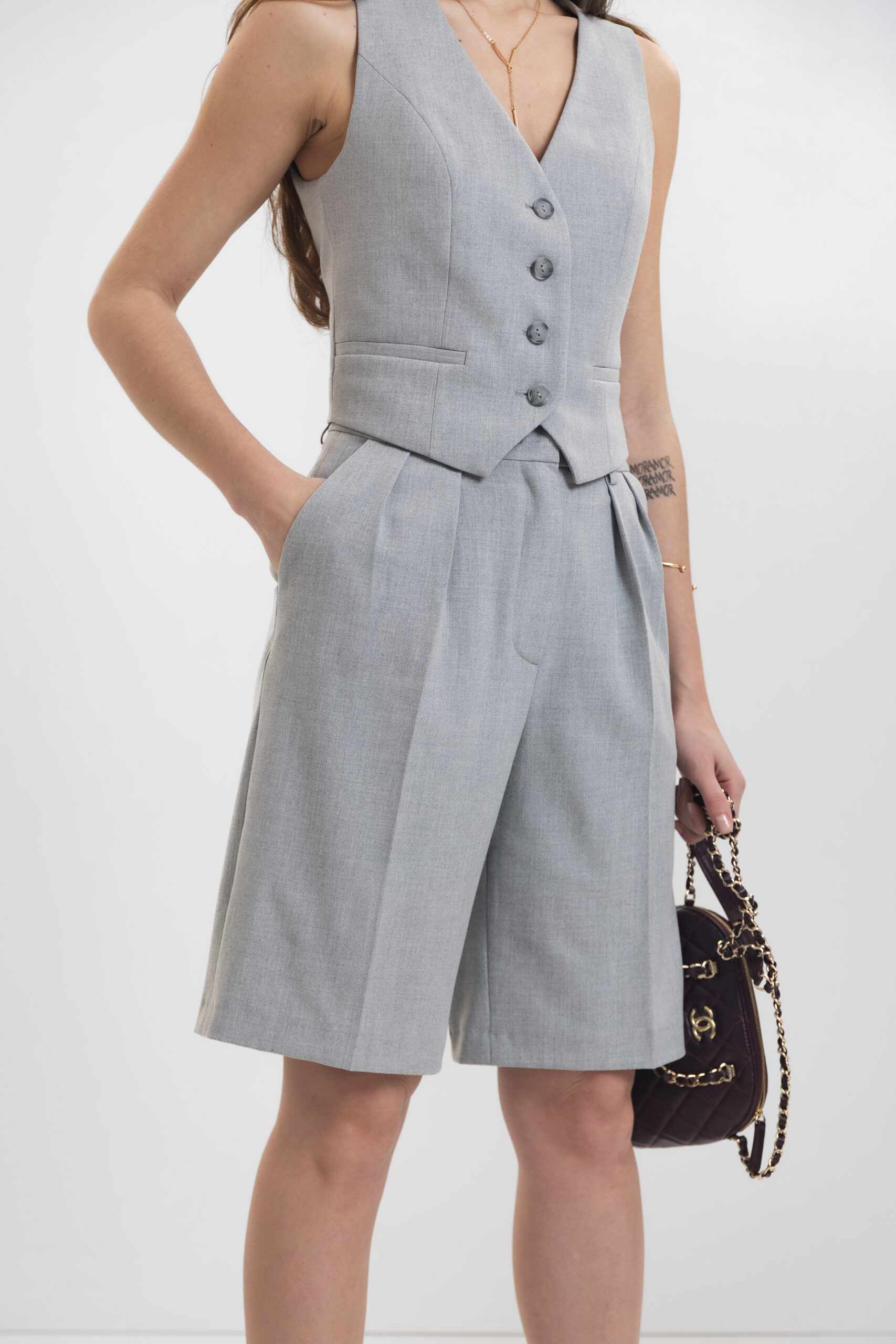 Безпрограшний фасон: світло-сірі бермуди — це завжди актуально і стильно. Вони легко поєднуються з іншими елементами гардеробу, дозволяючи вам створювати різноманітні образи для будь-якого випадку.