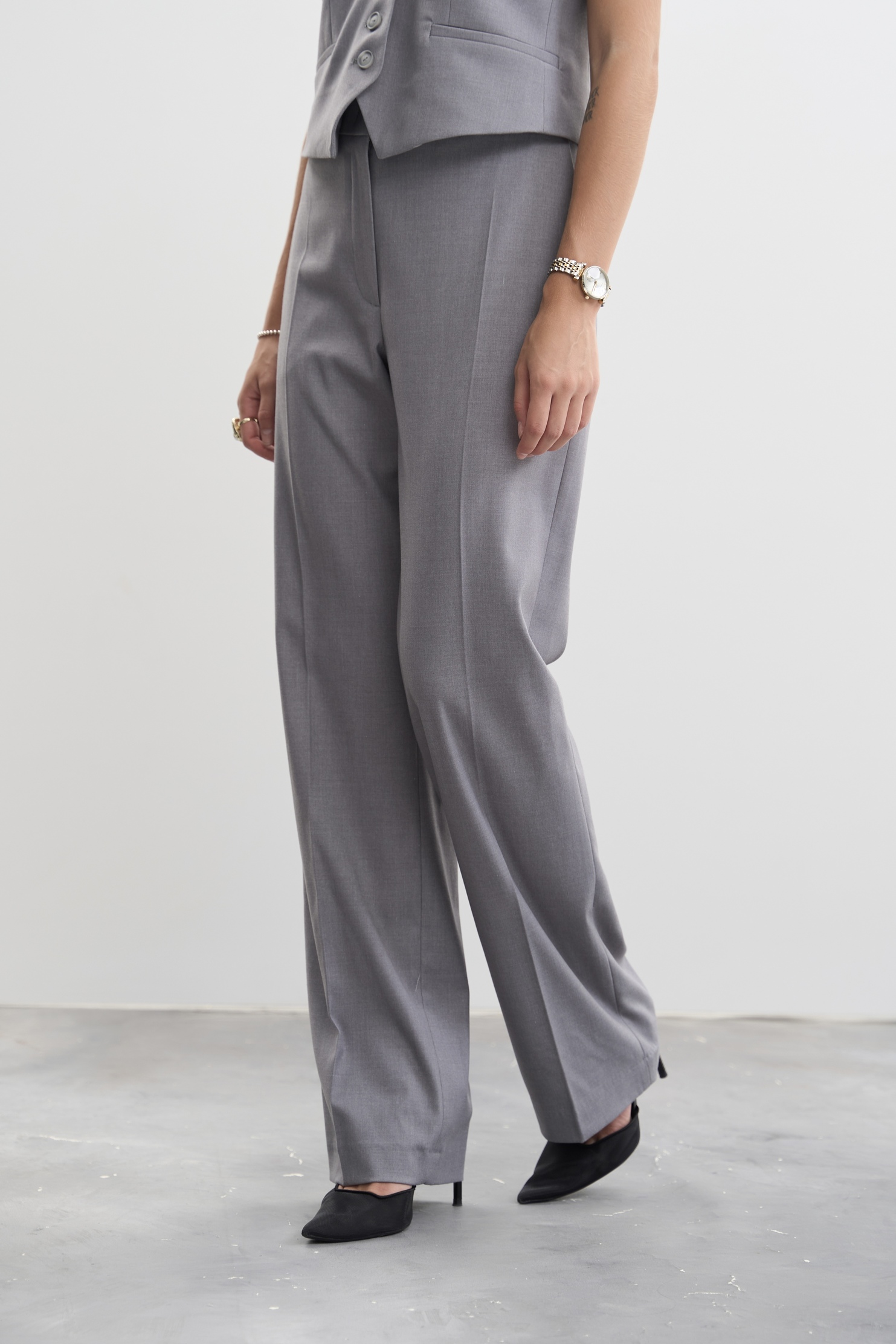 - Штани: Класичні прямі штани створюють сучасний і стильний образ, підкреслюючи стрункість ніг. Ідеальна посадка та комфортні матеріали роблять ці штани зручними для носіння протягом усього дня. Прямий крій штанів забезпечує елегантний вигляд, який підходить для будь-якої ситуації.