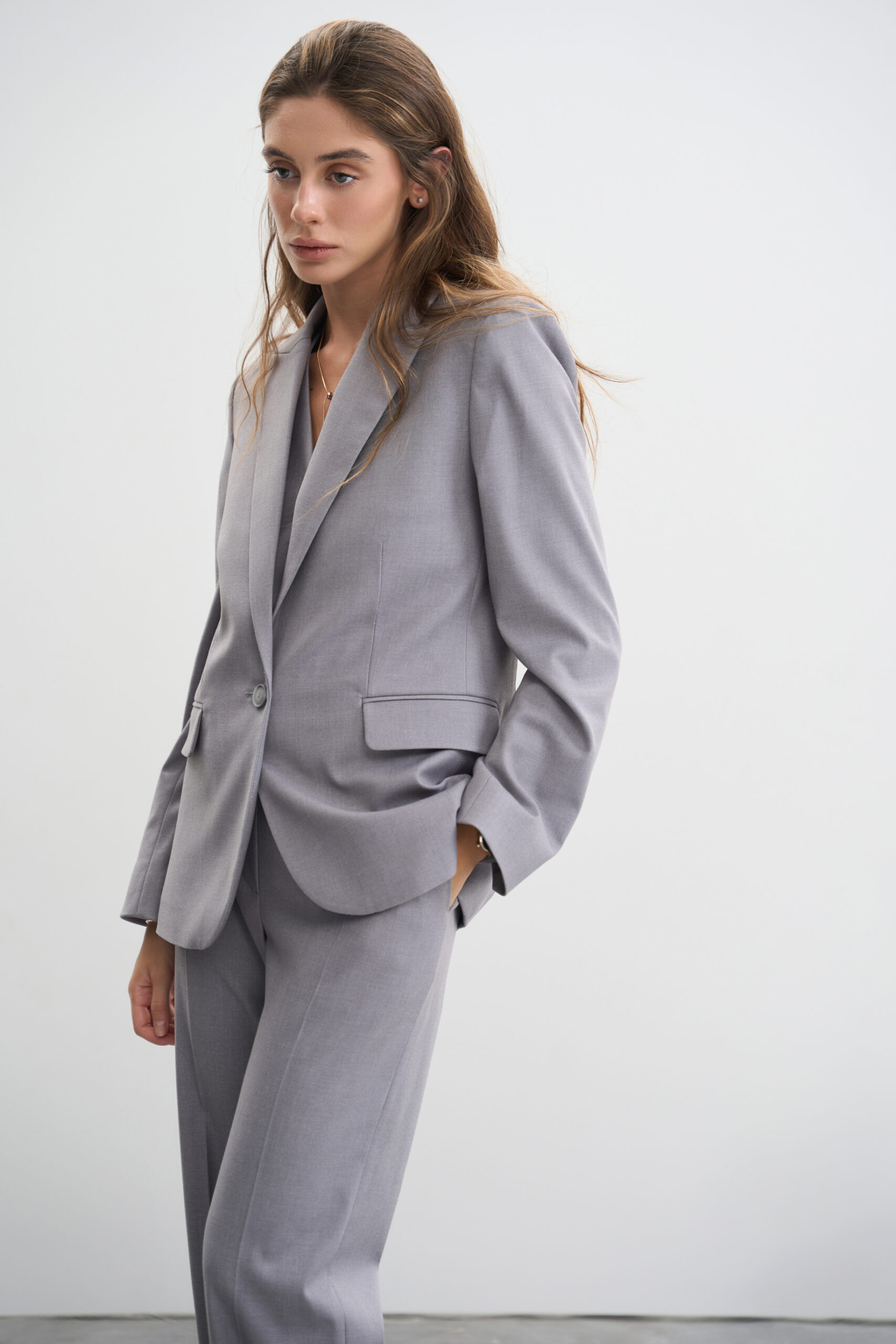 Цей жіночий костюм з класичним приталеним піджаком та прямими штанами – втілення стилю, елегантності та комфорту. Високоякісні матеріали, продуманий крій та універсальний дизайн роблять його незамінним елементом гардеробу кожної жінки. Незалежно від того, чи йдете ви на ділову зустріч, урочистий захід чи просто бажаєте виглядати стильно у повсякденному житті, цей костюм стане вашим вірним супутником.