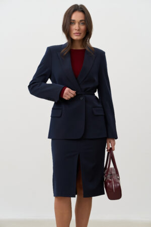 Жіночий синій костюм з двобортним піджаком і спідницею-олівцем — це стильна інвестиція у впевненість, елегантність і професійний імідж. Універсальний, статусний і продуманий до деталей, він стане ключовою річчю вашого гардероба.