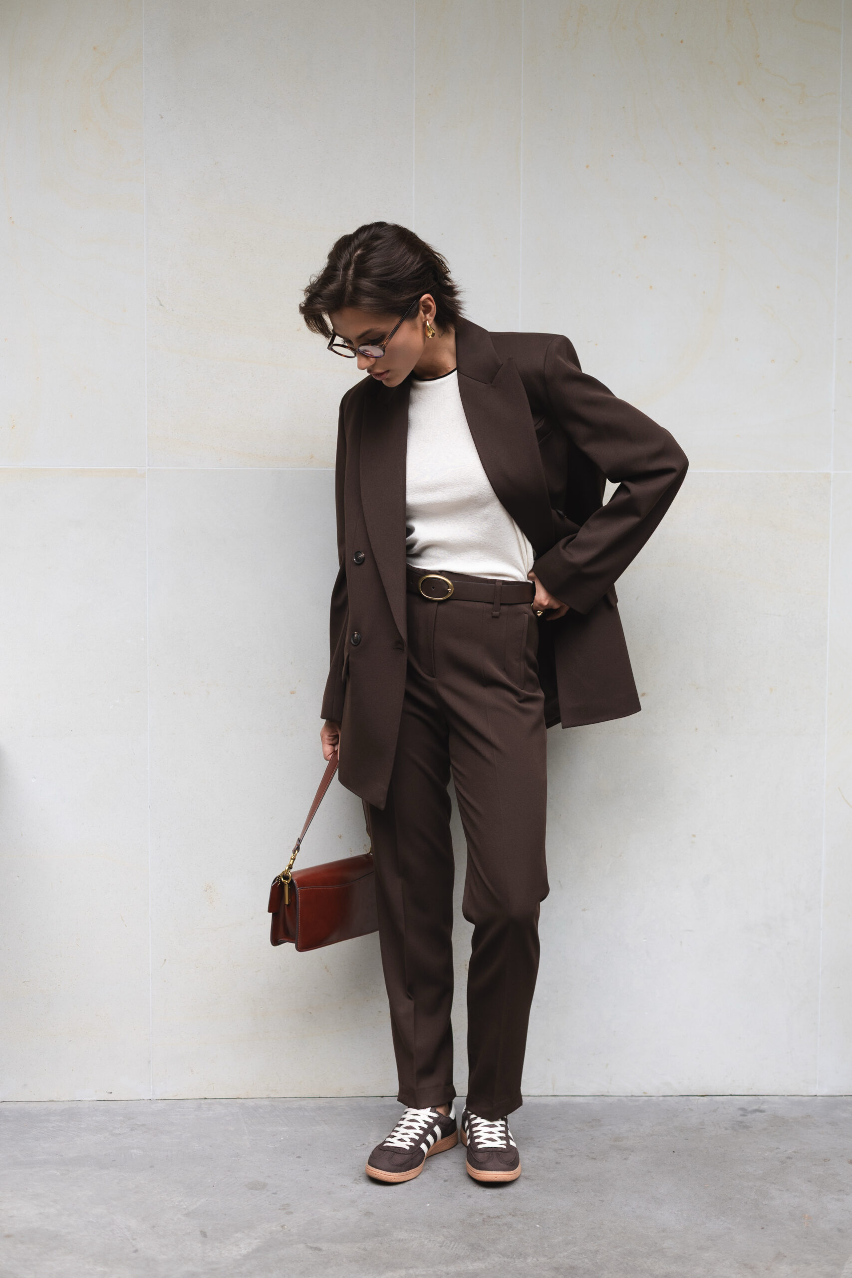 Актуальний тренд: підкресліть талію ременем поверх піджака.