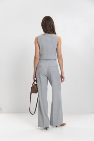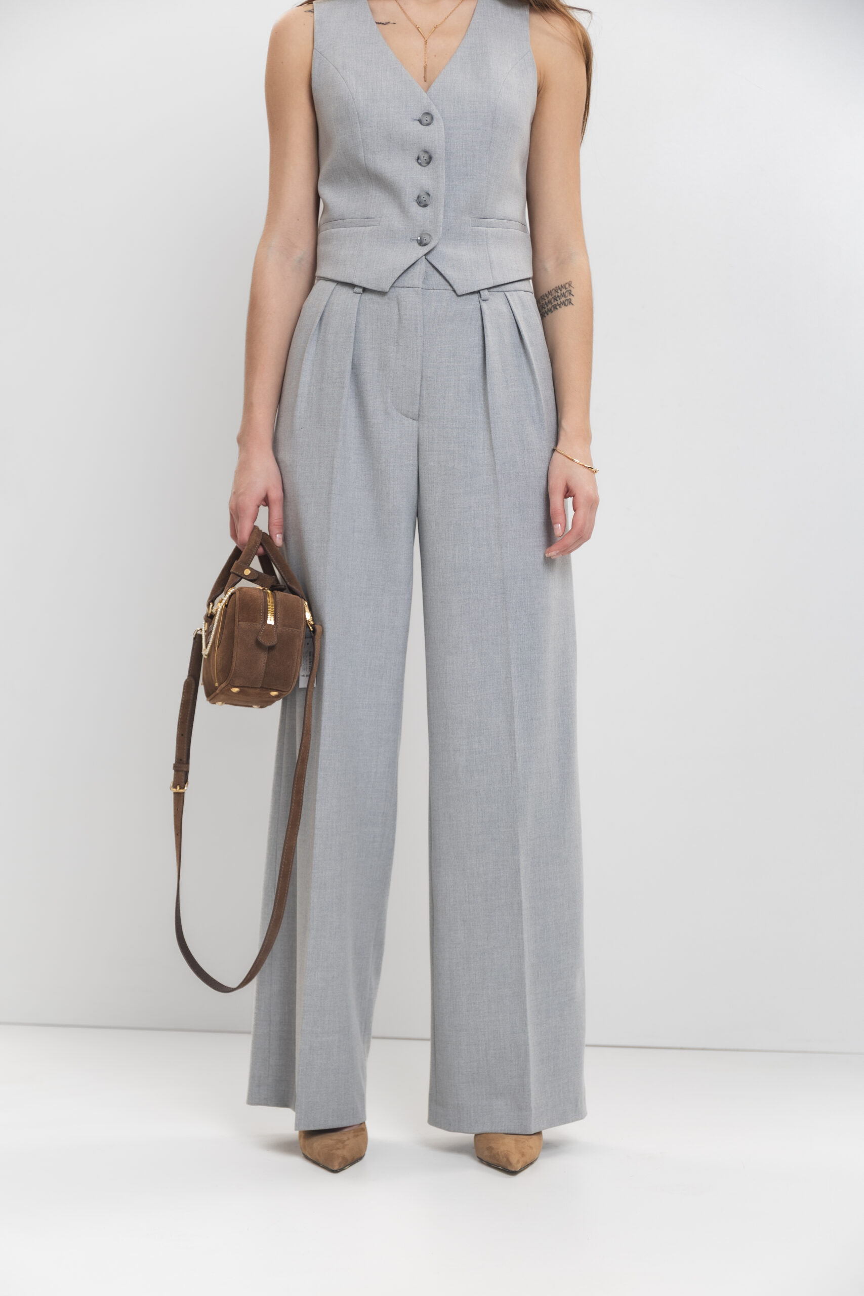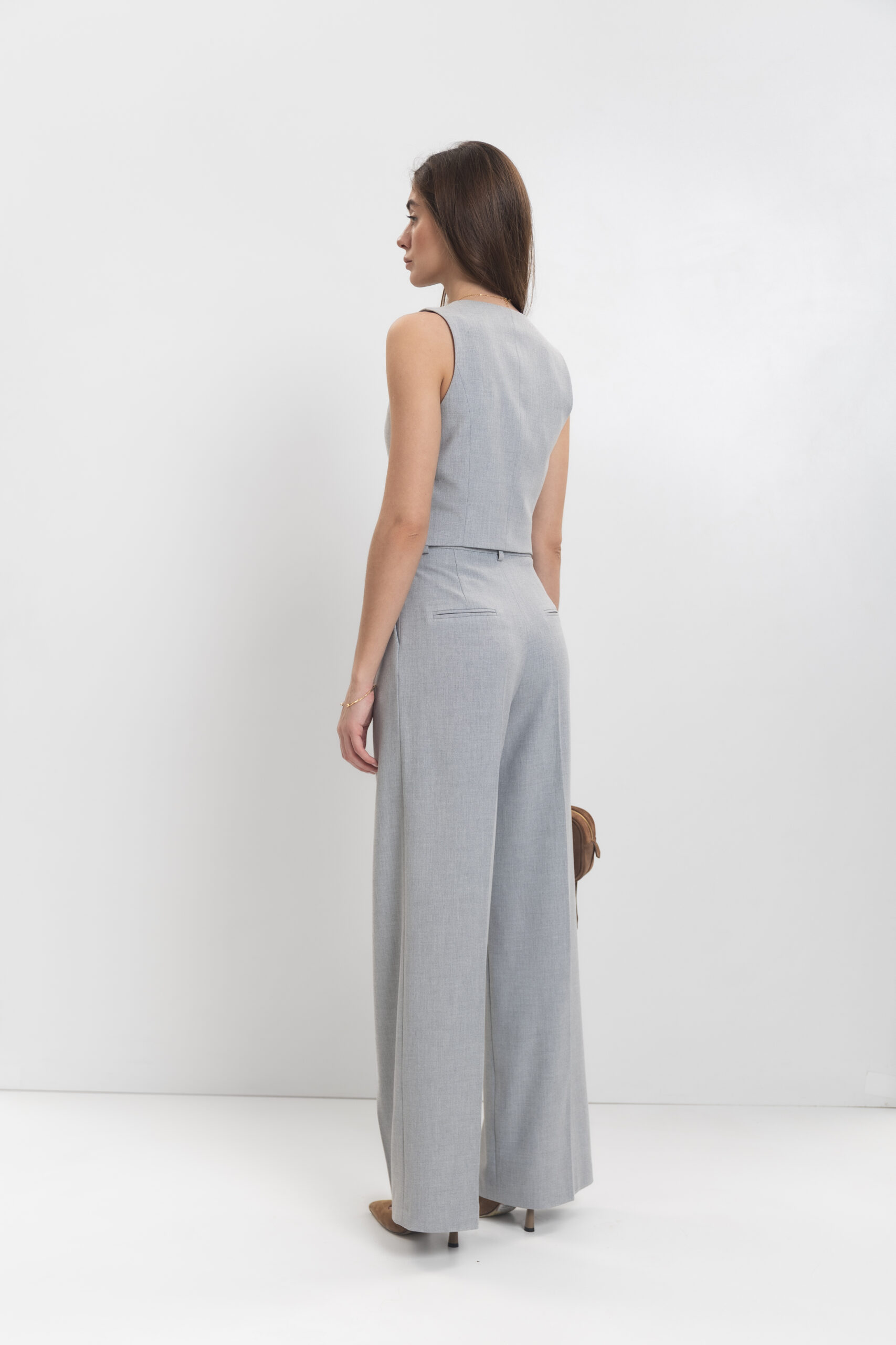 Елегантний костюм-двійка світло-сірого кольору з штанами палаццо