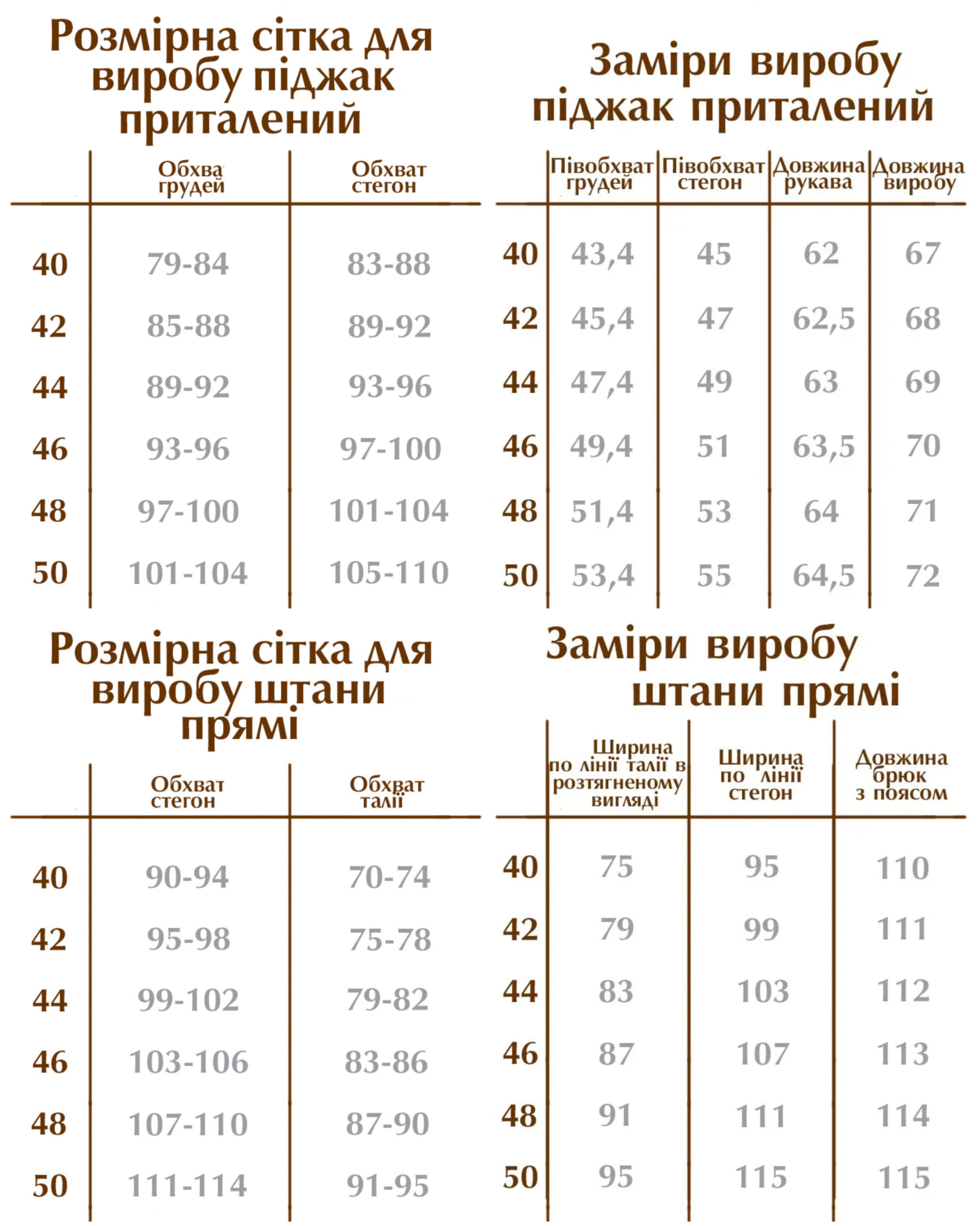 - Розміри: Костюм доступний у різних розмірах, що дозволяє кожній жінці обрати ідеальний варіант. Доступні розміри: 40, 42, 44, 46, 48, 50. Детально ознайомитися з розмірною сіткою можна на нашому сайті, щоб підібрати саме той розмір, який найкраще підходить вам.