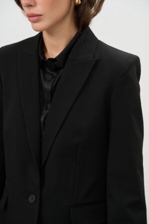 - Колір: Чорний колір костюму є універсальним і підходить для будь-якої події – від ділових зустрічей до урочистих заходів. Чорний колір додає костюму особливого шарму та елегантності, роблячи його незамінним елементом вашого гардеробу.