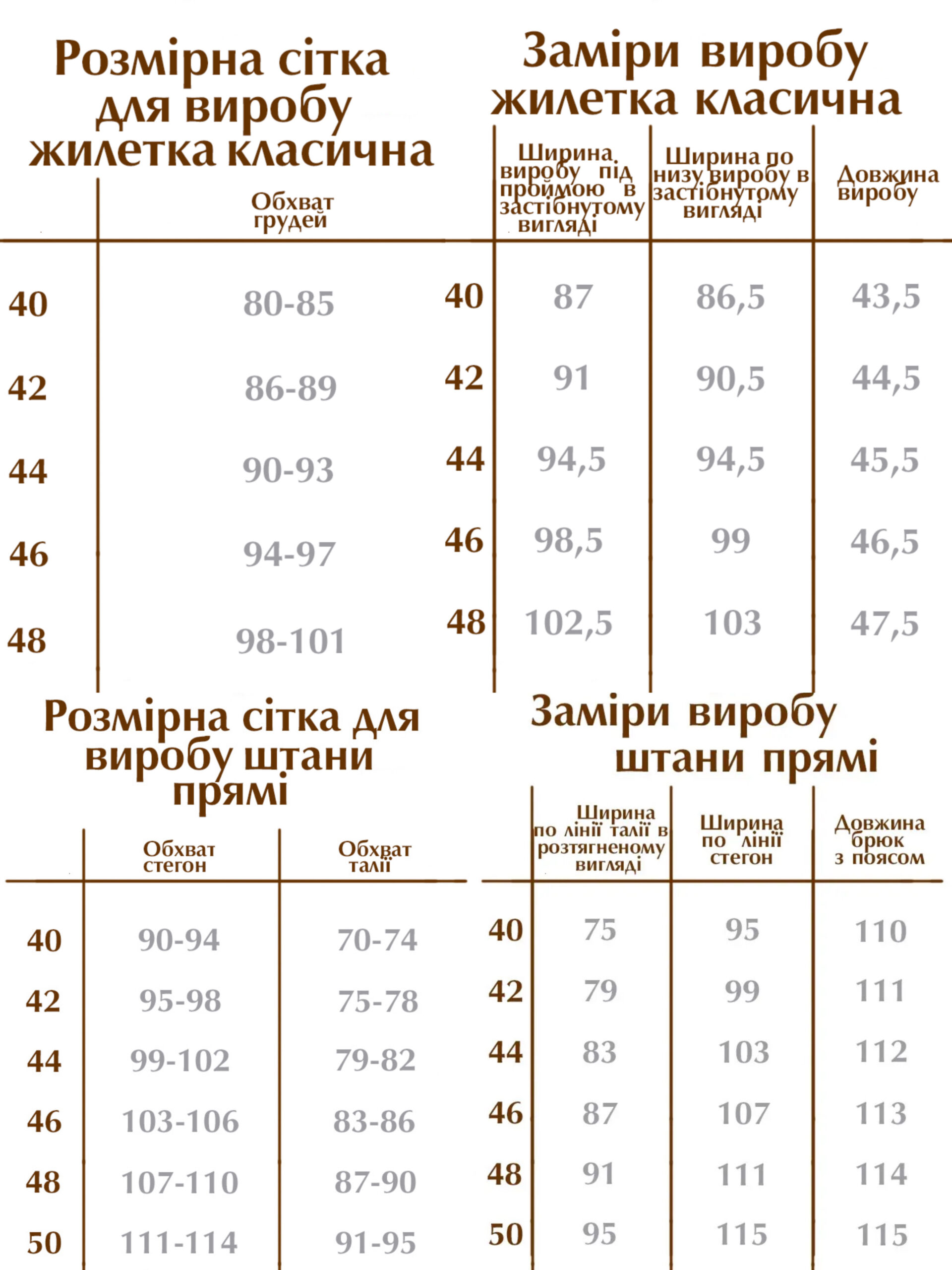 - Розміри: Костюм доступний у розмірах 40, 42, 44, 46, 48. Наш сайт містить детальну розмірну сітку, що допоможе вам обрати ідеальний розмір для бездоганної посадки.