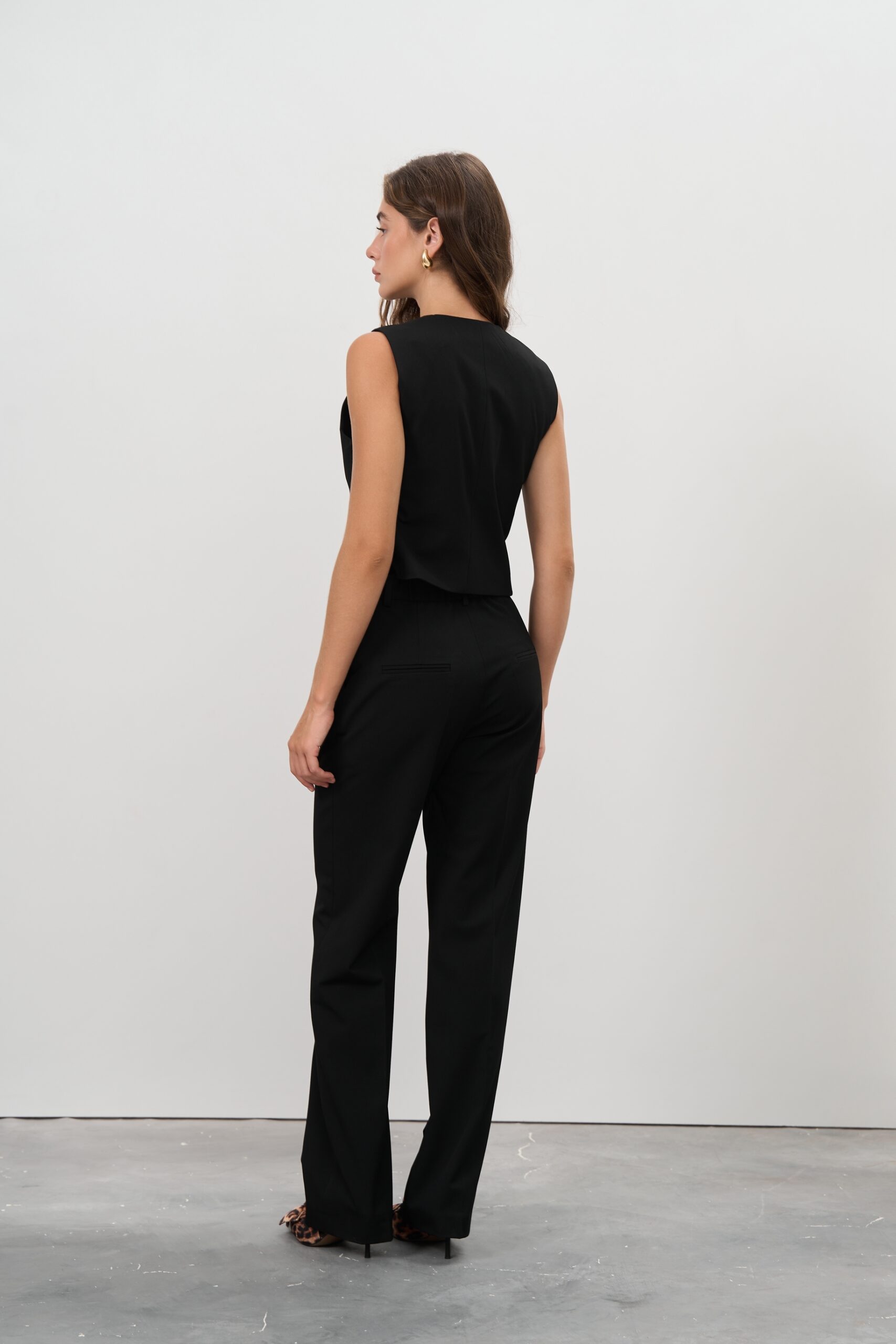 - Ділові зустрічі: Класичний крій жилетки та прямі штани створюють професійний вигляд, ідеальний для офісу та бізнес-зустрічей.