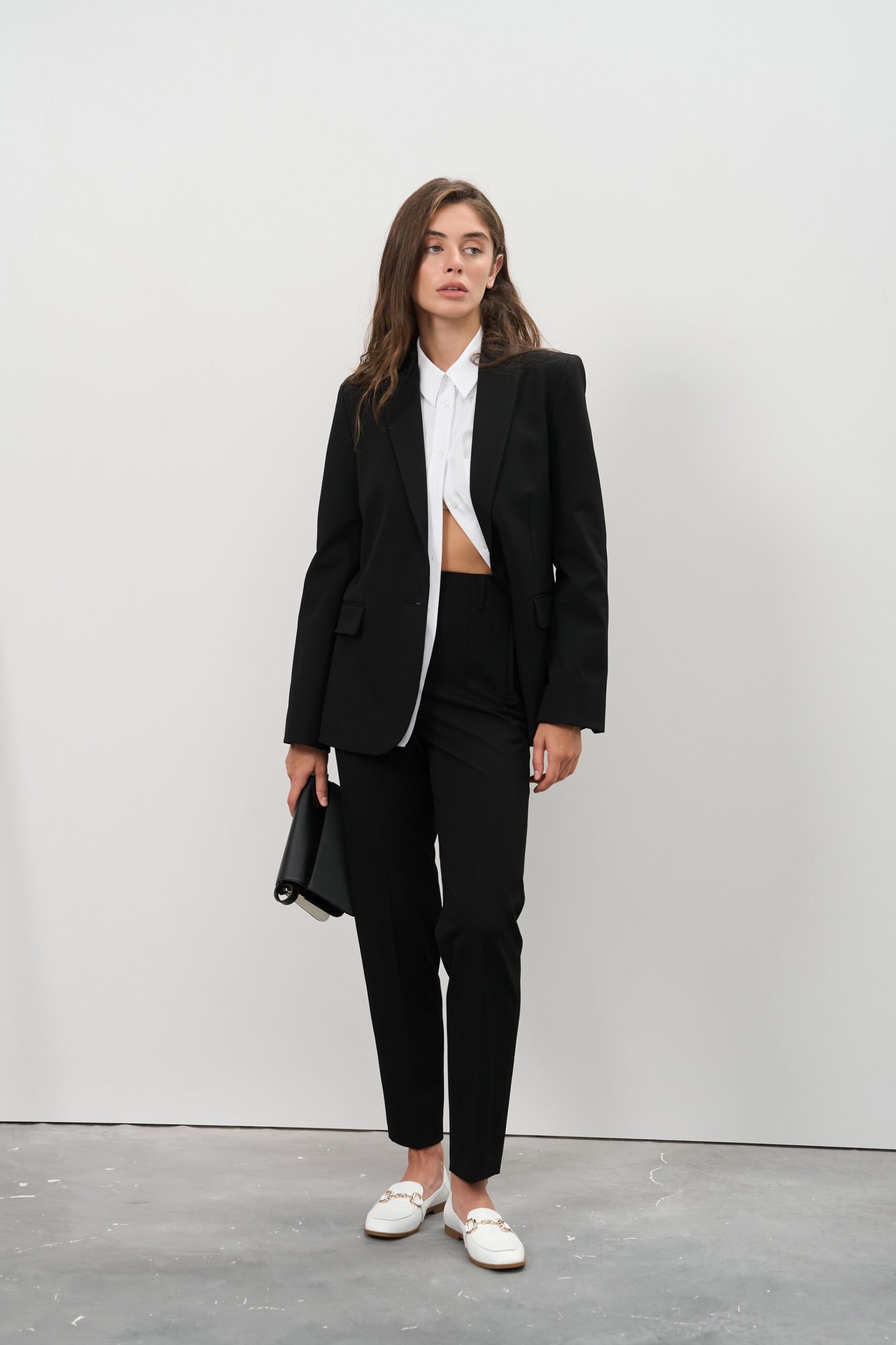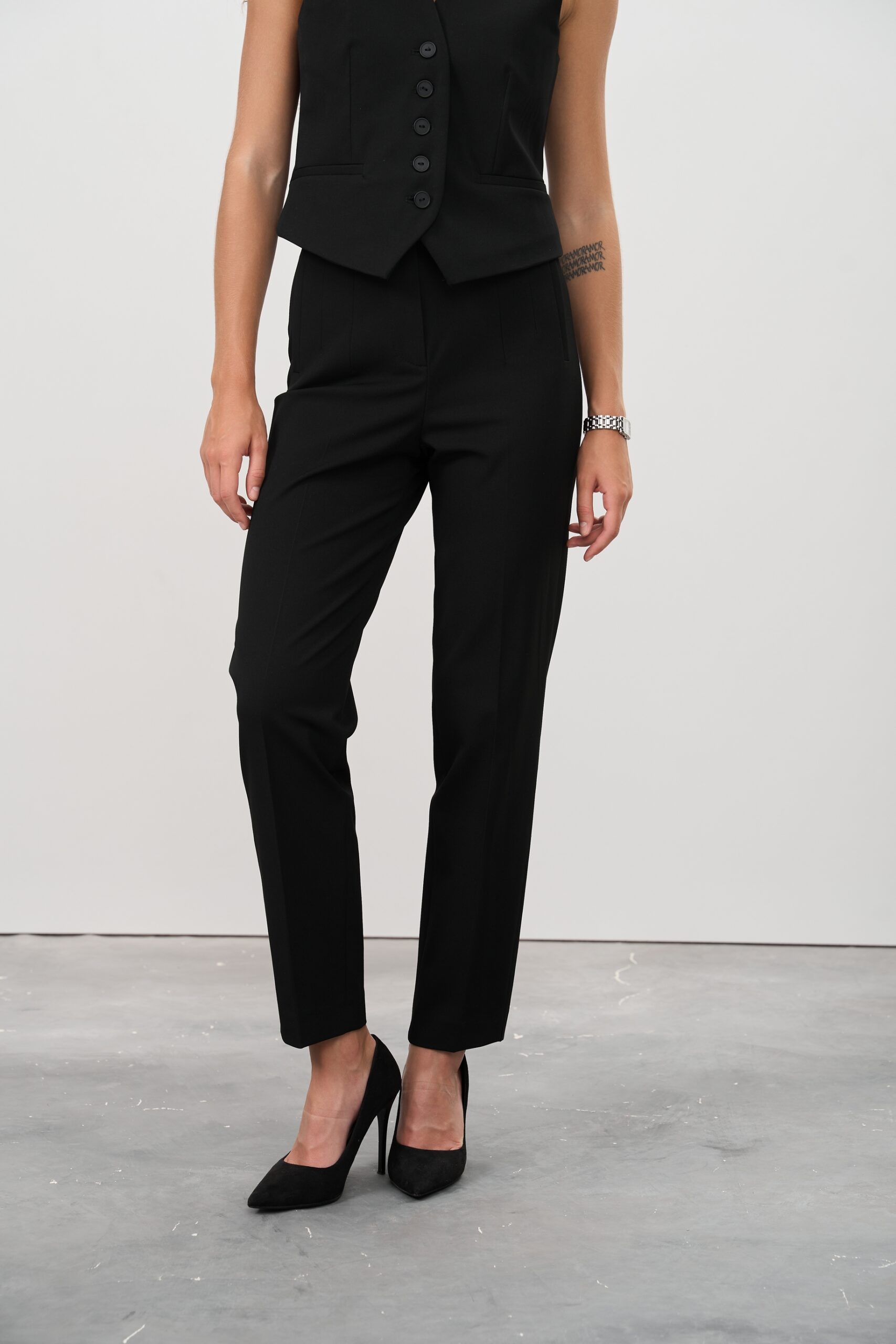 - Штани: Завужені штани створюють сучасний і стильний образ, підкреслюючи стрункість ніг. Ідеальна посадка та комфортні матеріали роблять ці штани зручними для носіння протягом усього дня.