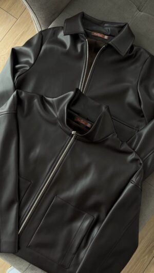 Жіноча куртка-бомбер з еко-шкіри чорного кольору — це позачасова класика у сучасному виконанні. Глибокий чорний відтінок виглядає стримано, дорого та максимально універсально. Така модель легко інтегрується в будь-який гардероб і стане базовим елементом як повсякденних, так і smart-casual образів.