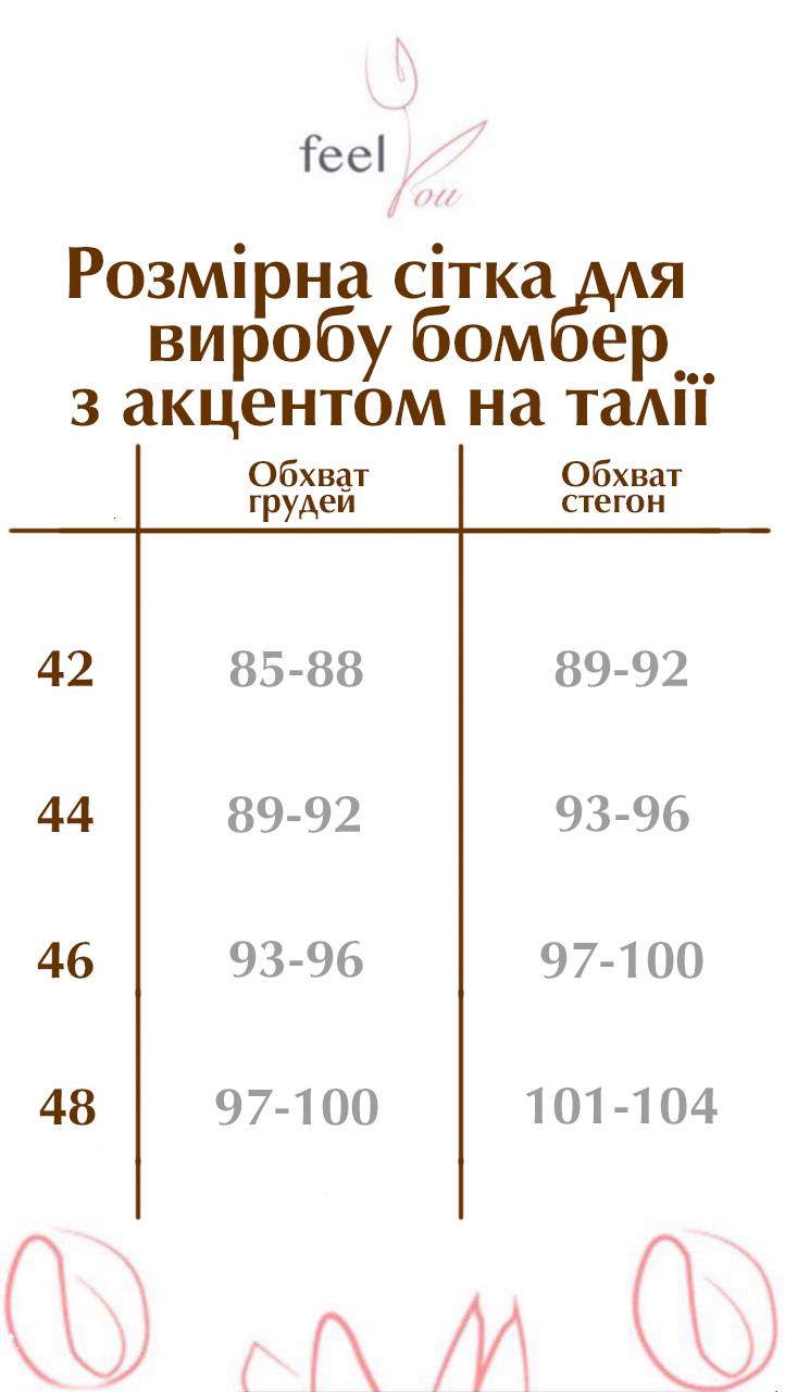 Куртка доступна у розмірах: 42, 44, 46, 48.