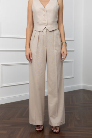 Лляні палаццо кольору лате — це не просто сезонна річ. Вони ідеально вписуються у щоденний ритм життя: на роботу, на каву, на вихідні. В них легко почуватися стильною, не докладаючи зусиль. Це той одяг, що підтримує ваш настрій і робить його кращим.