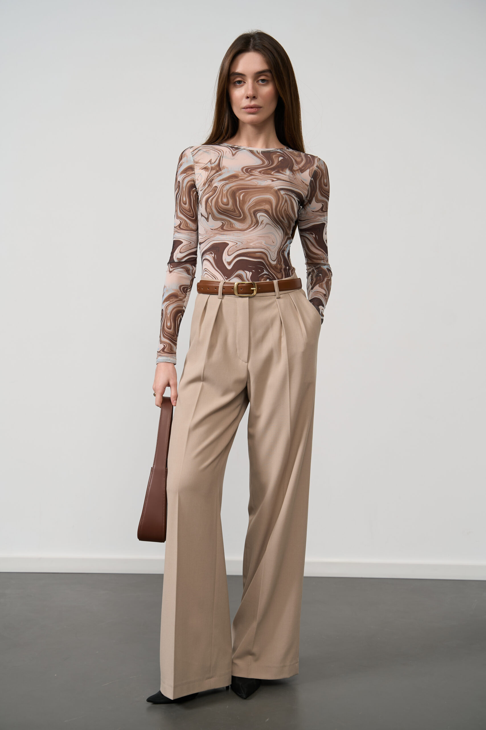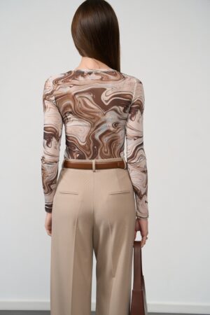 Матеріал із поєднанням поліестеру та еластану забезпечує ідеальну посадку, м’яко прилягаючи до тіла. Завдяки своїй еластичності лонг не втрачає форми та залишається таким же стильним навіть після численних прань. Напівпрозора тканина надає легкість та додає вишуканої загадковості образу.