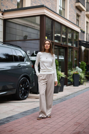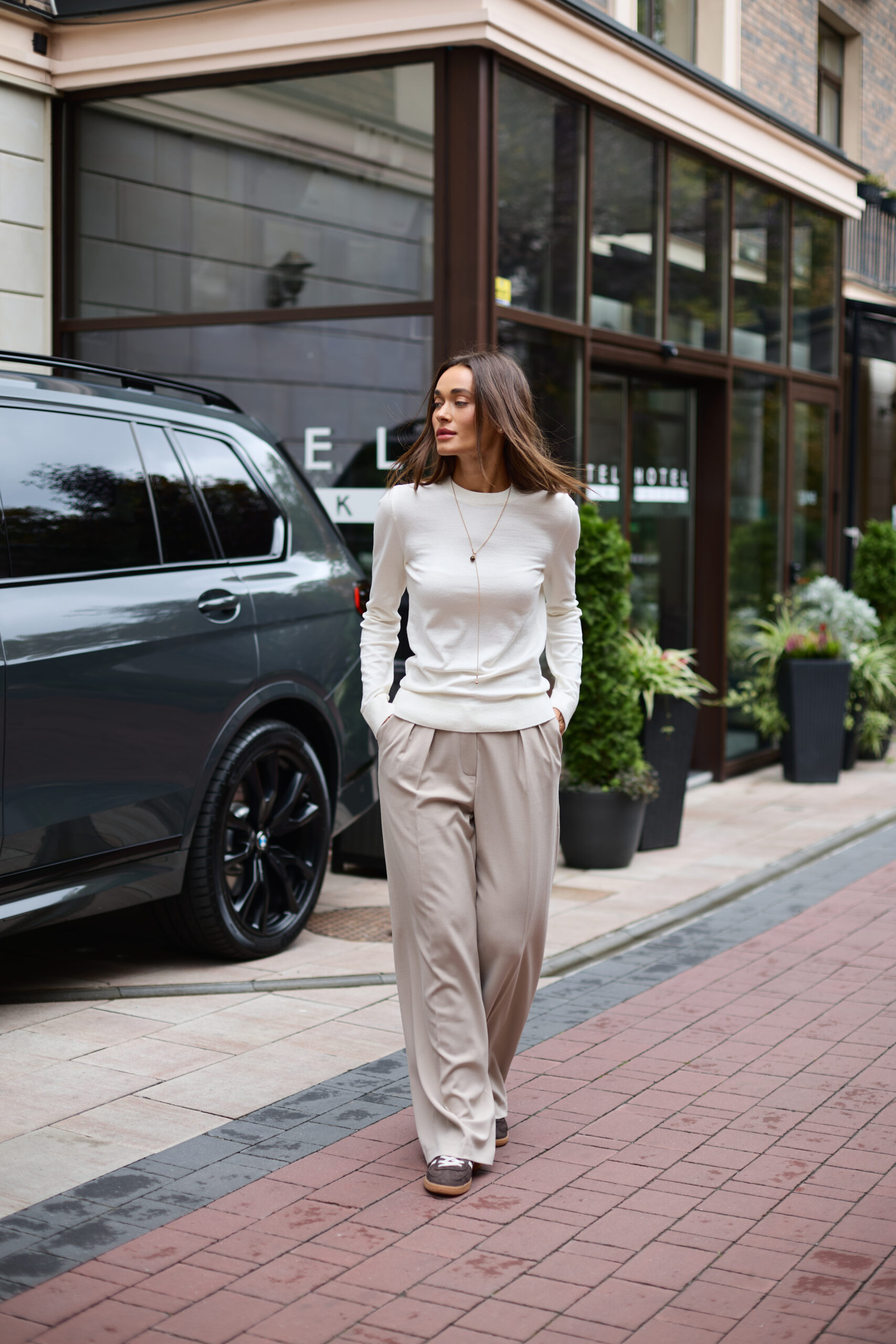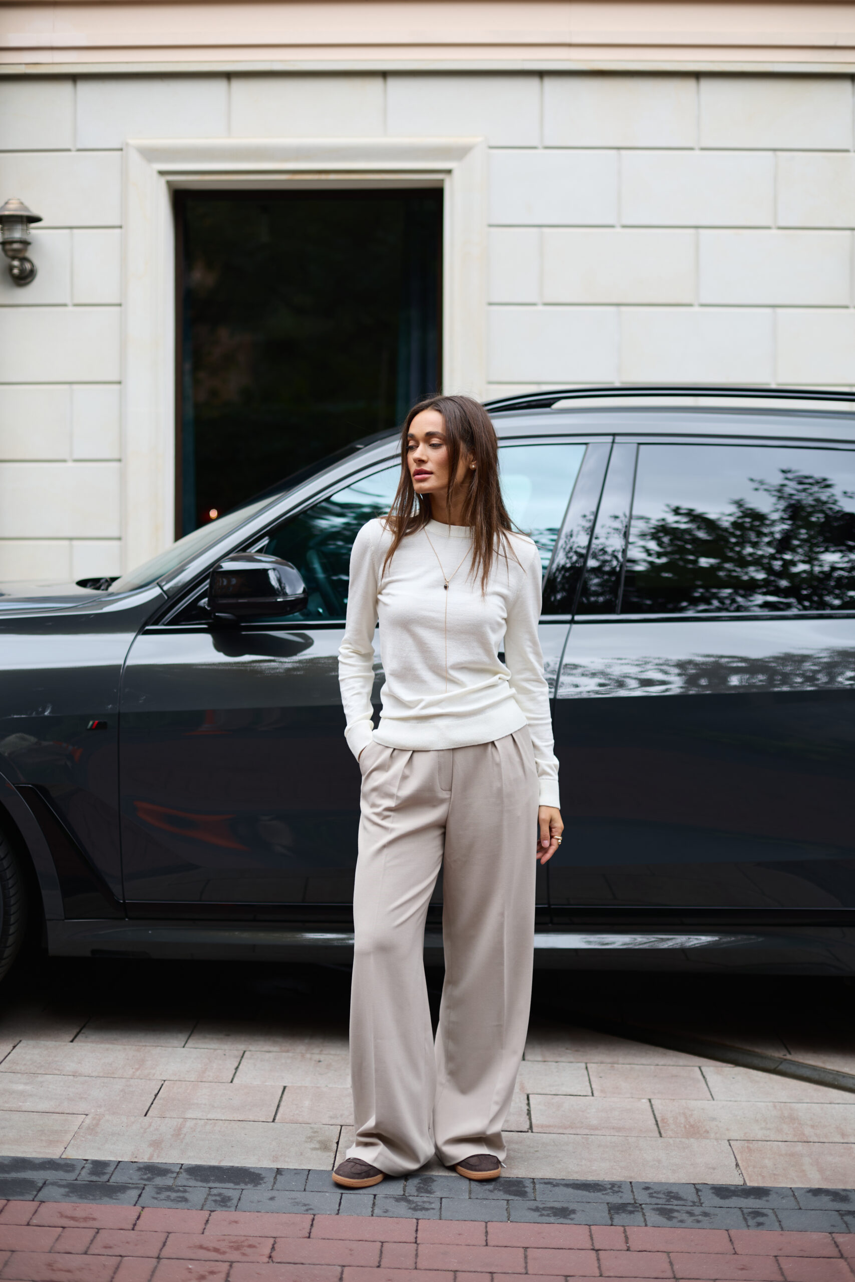 Переваги • Базова річ, яка поєднується з будь-яким стилем. • Високоякісний трикотаж, що зберігає форму. • Нейтральний відтінок «молоко» — завжди актуальний і вишуканий. • Ідеальний вибір для багатошарових образів у будь-яку пору року.