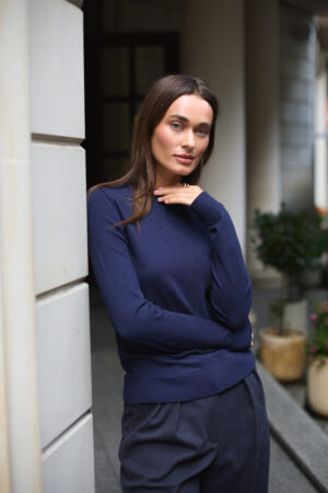 Жіночий базовий лонгслів у насиченому синьому кольорі — універсальна та стильна річ, яка стане основою вашого гардеробу. Глибокий відтінок синього додає образу елегантності, стриманості та впевненості, а класичний крій і гладка в’язка роблять лонгслів комфортним і практичним для повсякденного носіння. Ця модель ідеально підходить для створення офісних луків, вечірніх комплектів або як базовий шар під жакети та кардигани.