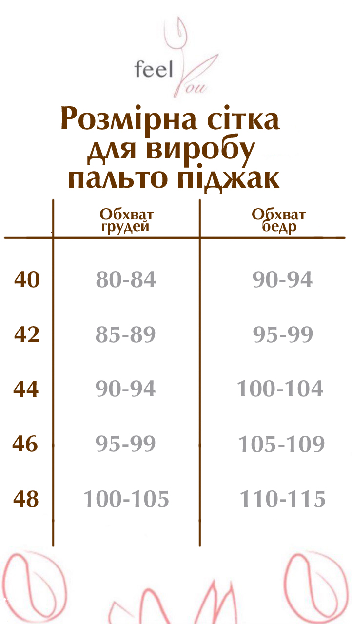 Доступні розміри: 40, 42, 44, 46, 48