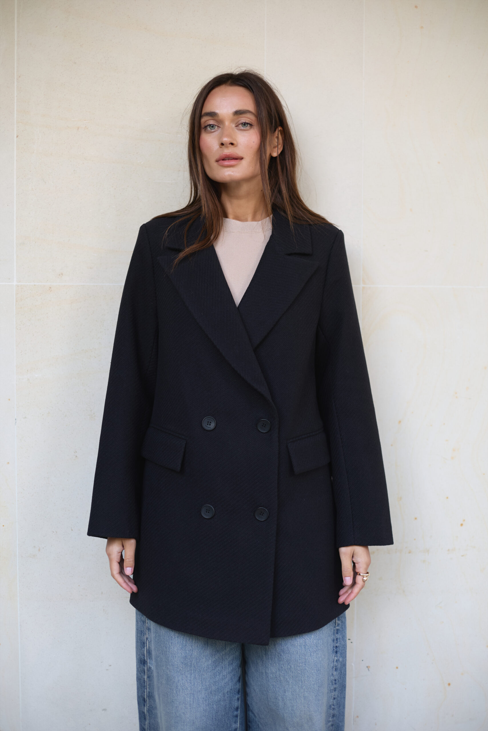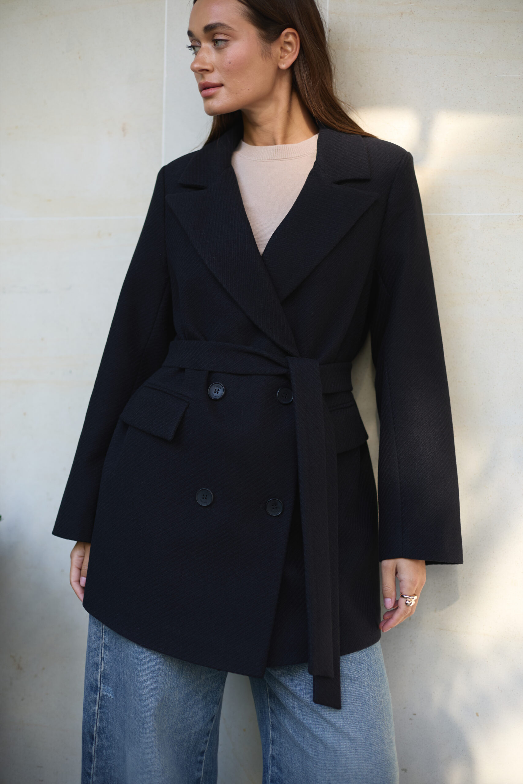 Жіноче пальто-піджак із вовни у чорному кольорі — класика та елегантність у кожному образі
