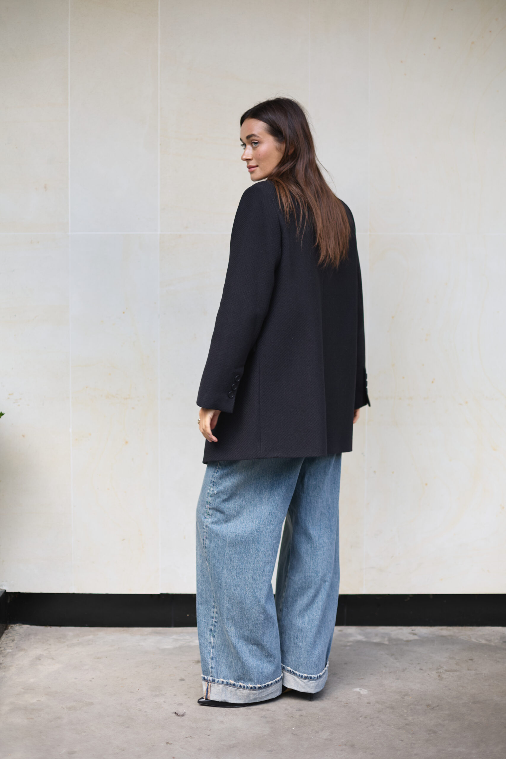 Як носити чорне пальто-піджак із вовни
