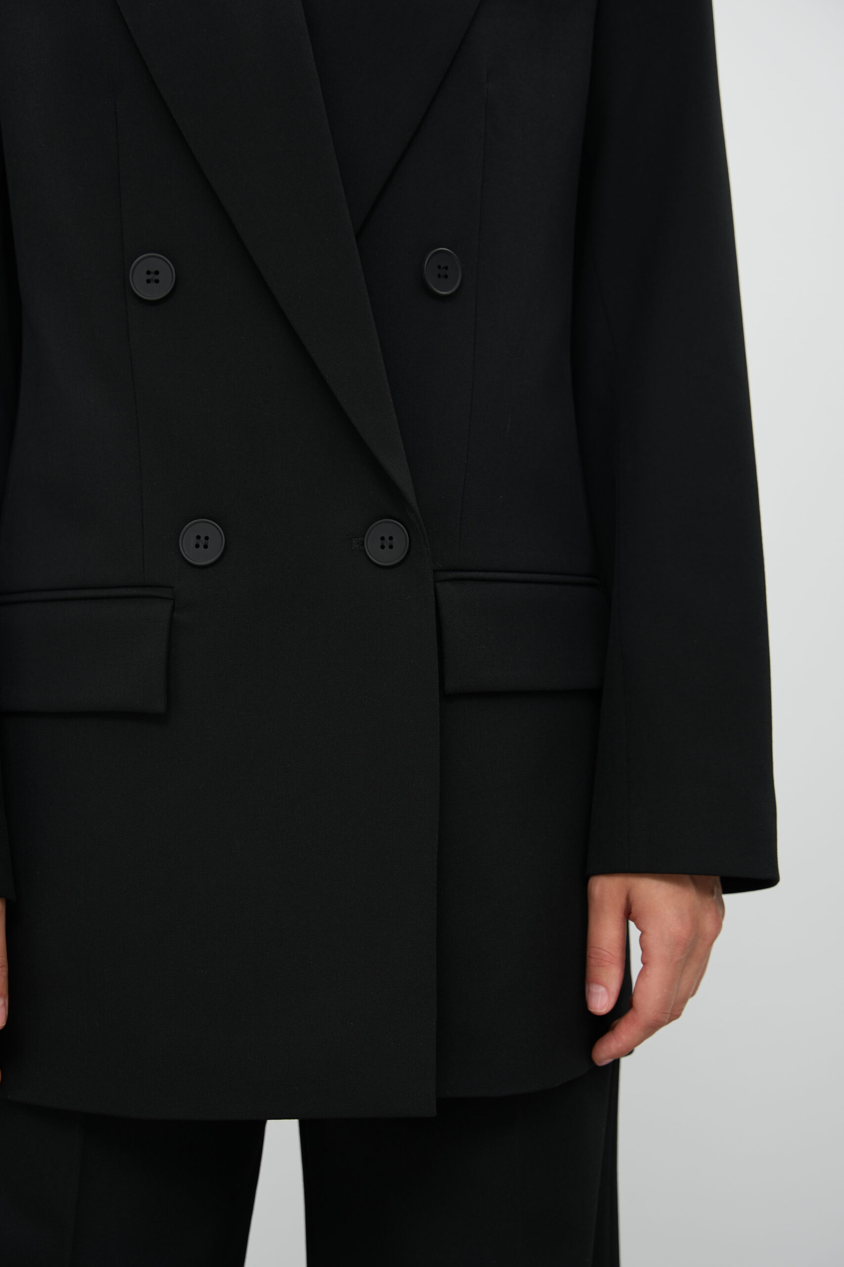 Чорний жіночий піджак з акцентними плечима — сучасна класика, яка завжди доречна