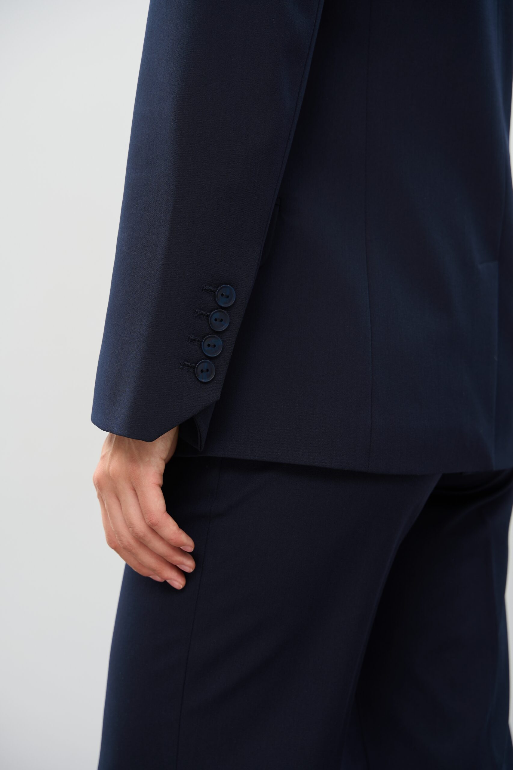 Піджак виготовлений з преміальної тканини, яка поєднує комфорт, довговічність та елегантний вигляд: