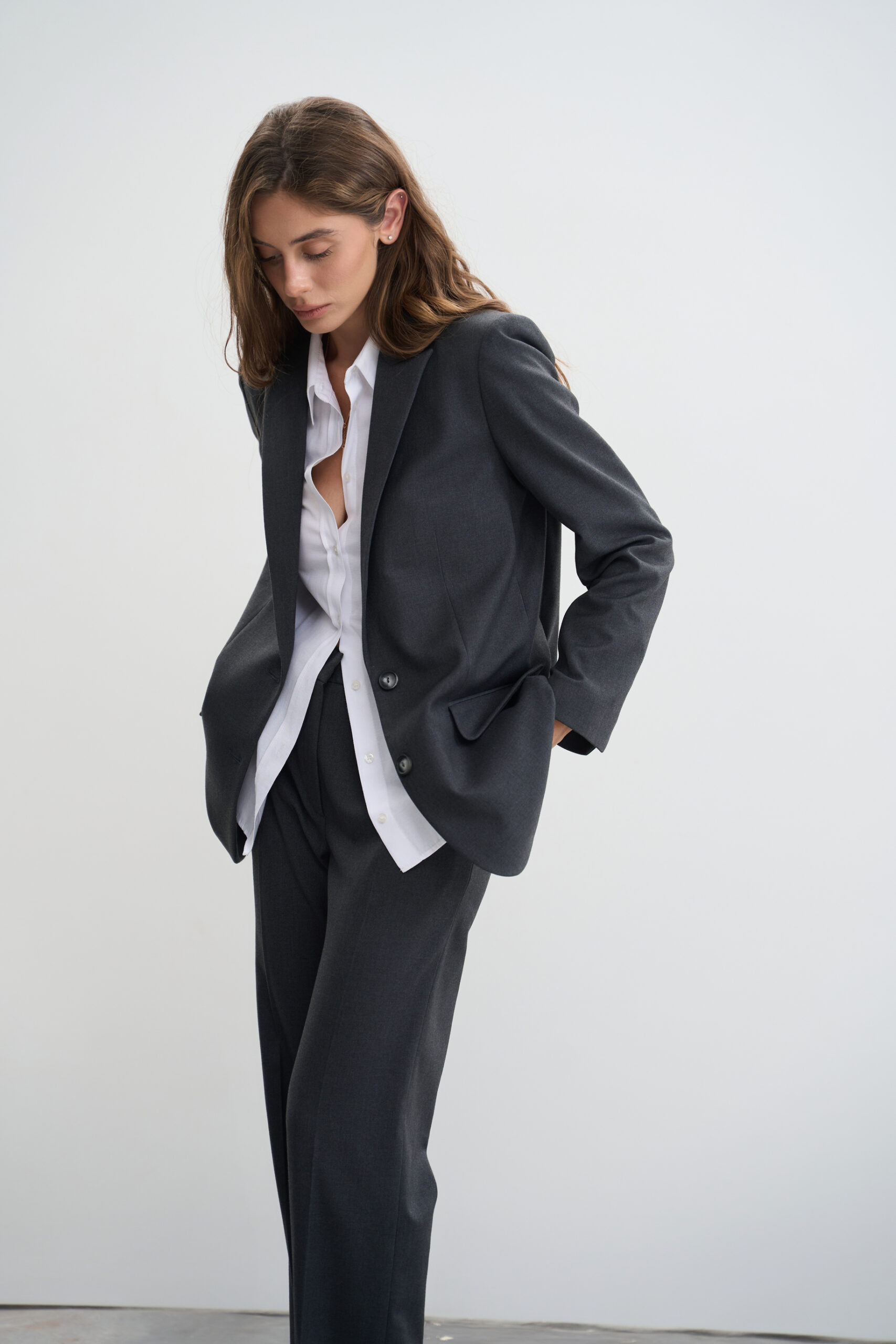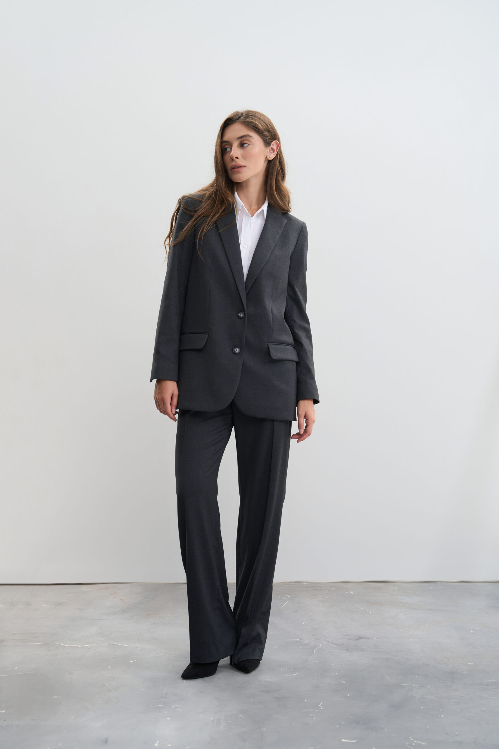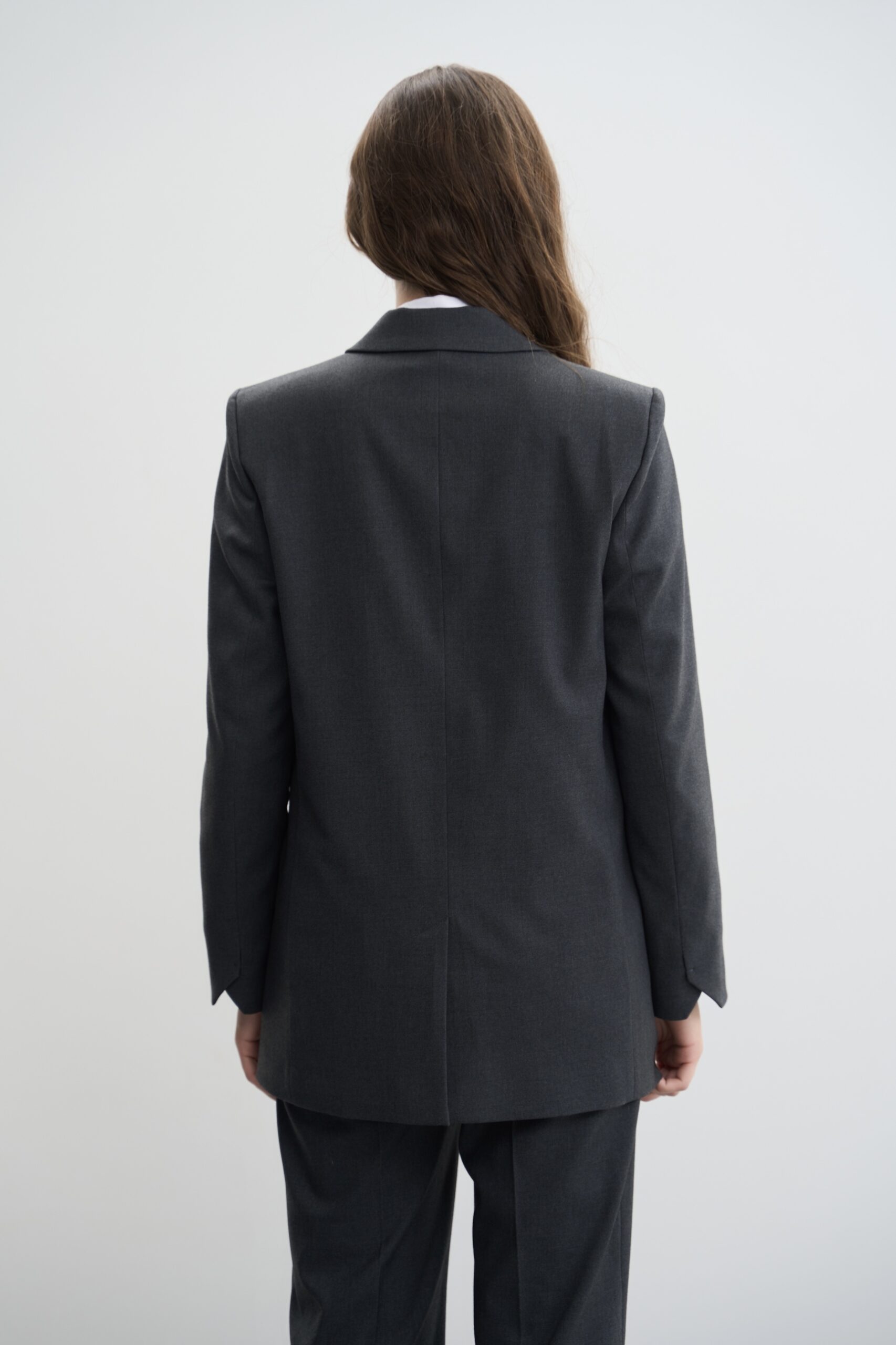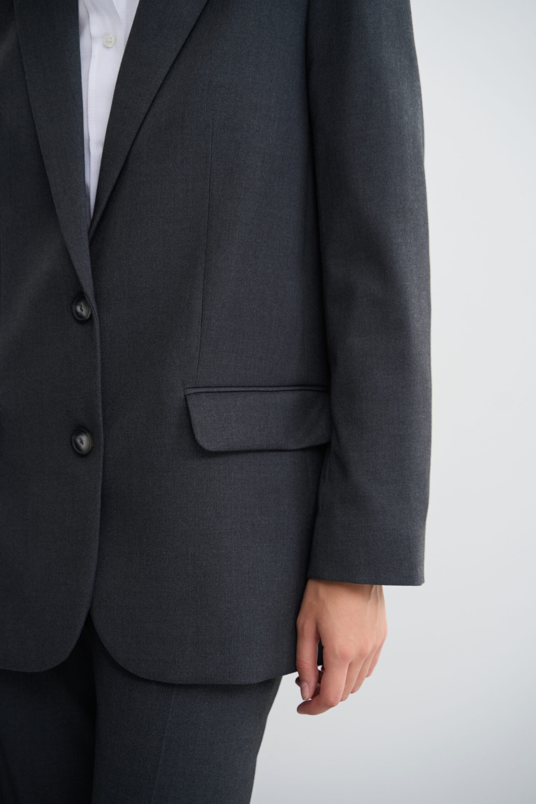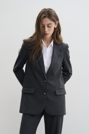 - Ґудзики: піджак застібається на два ґудзики, що додає йому класичного вигляду та елегантності.