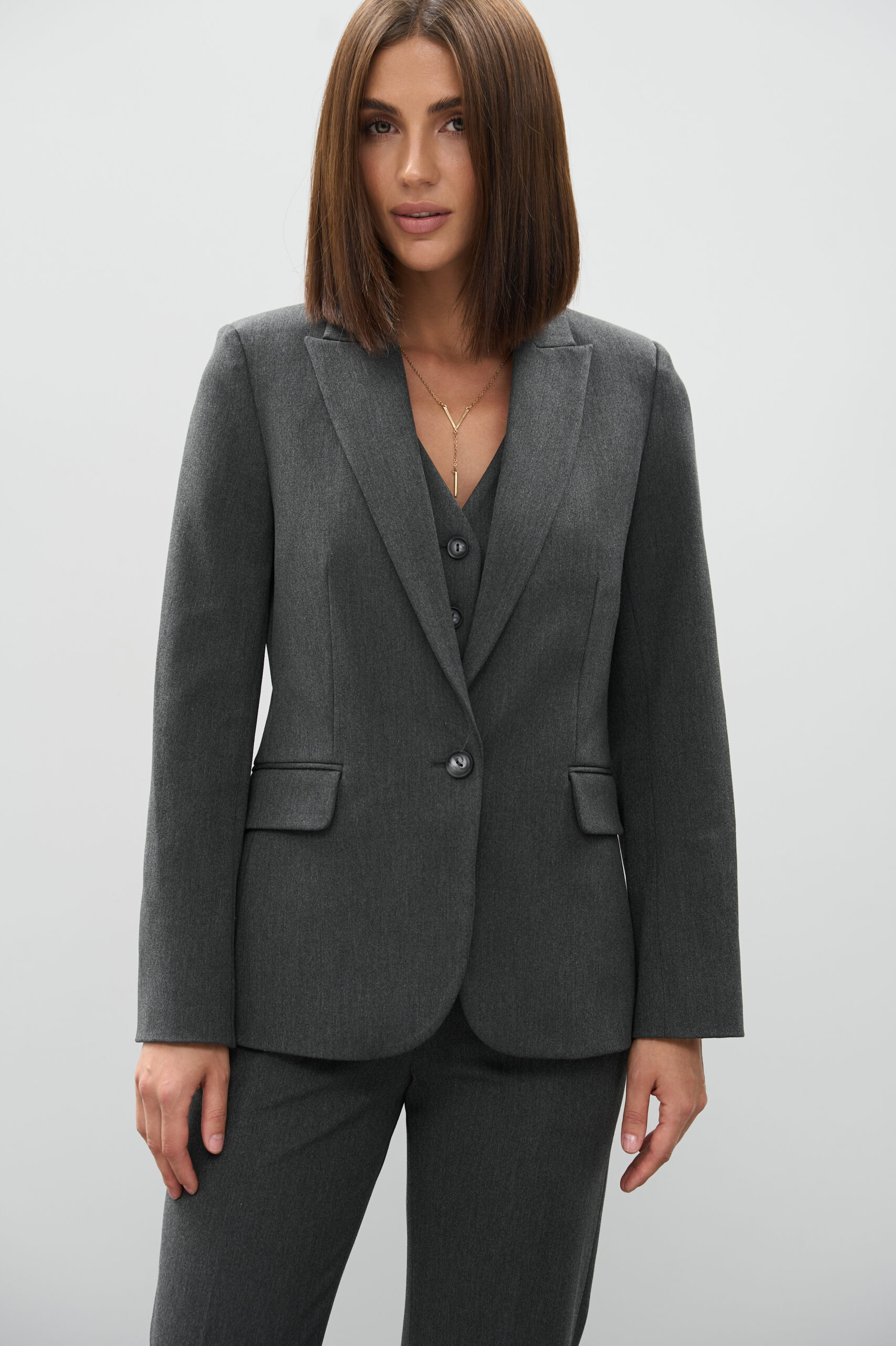 Приталений піджак графітового кольору — витонченість, стиль та бездоганна посадка
