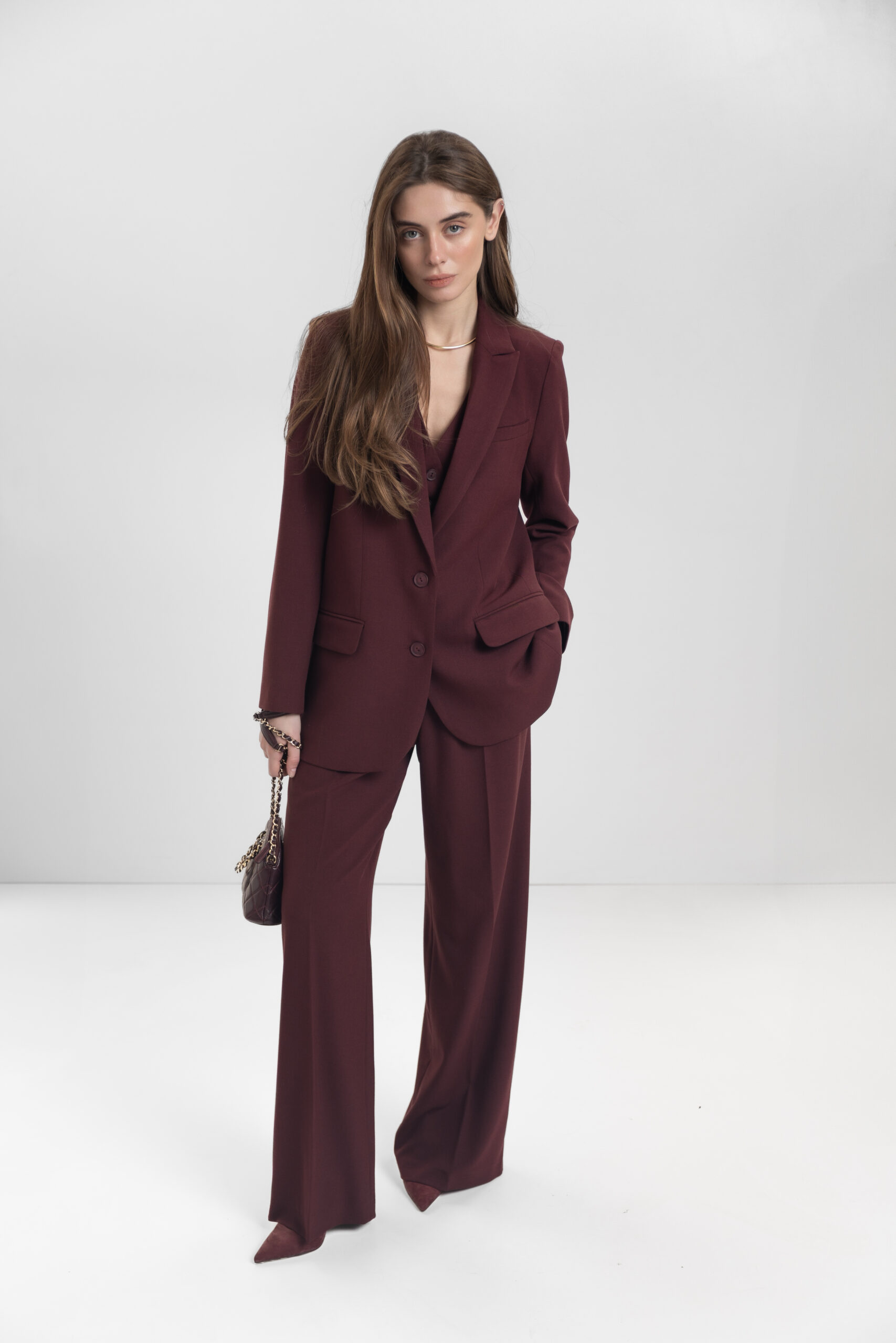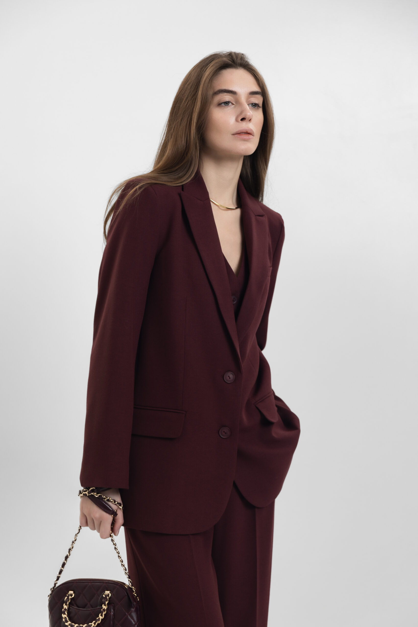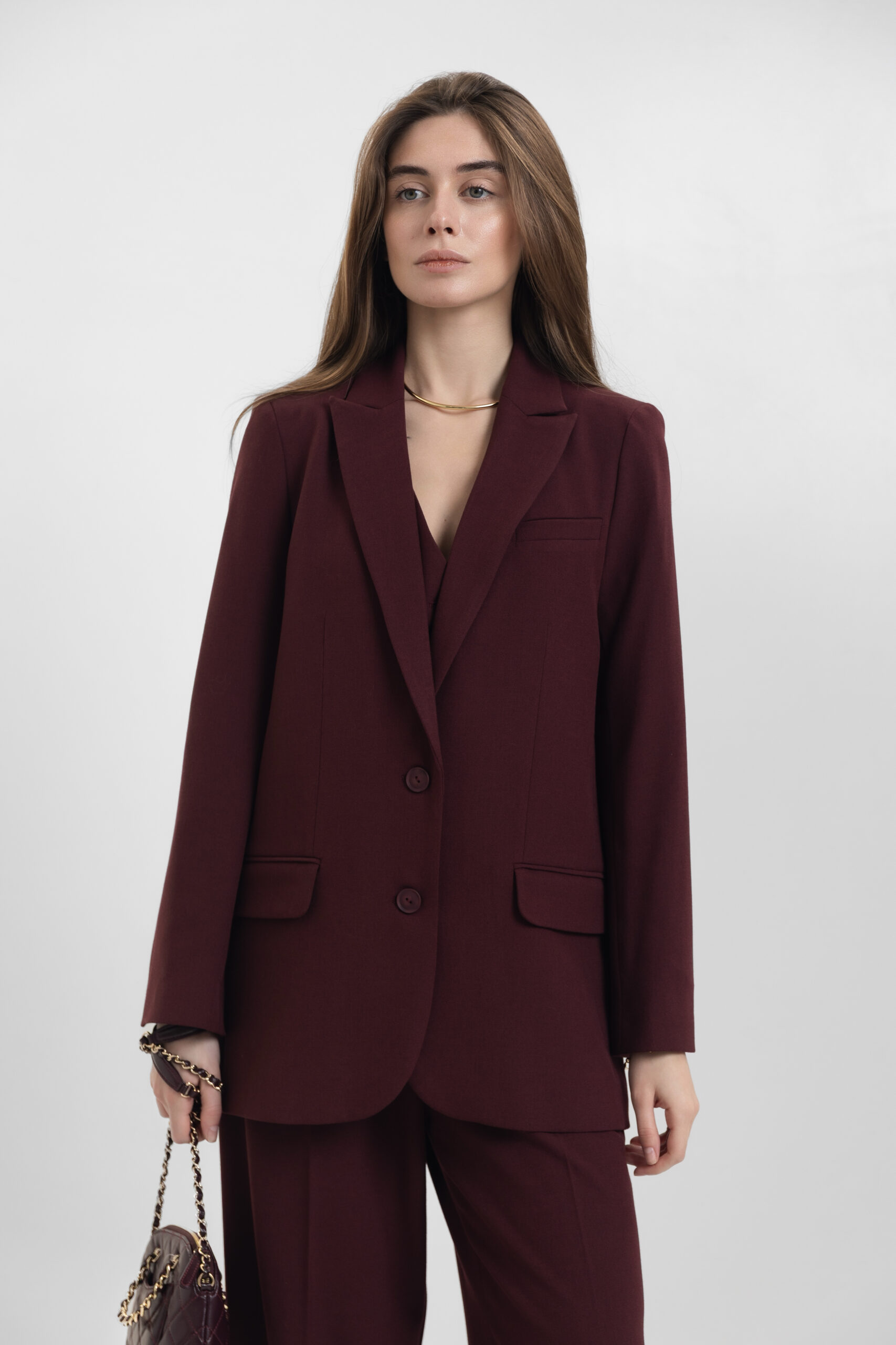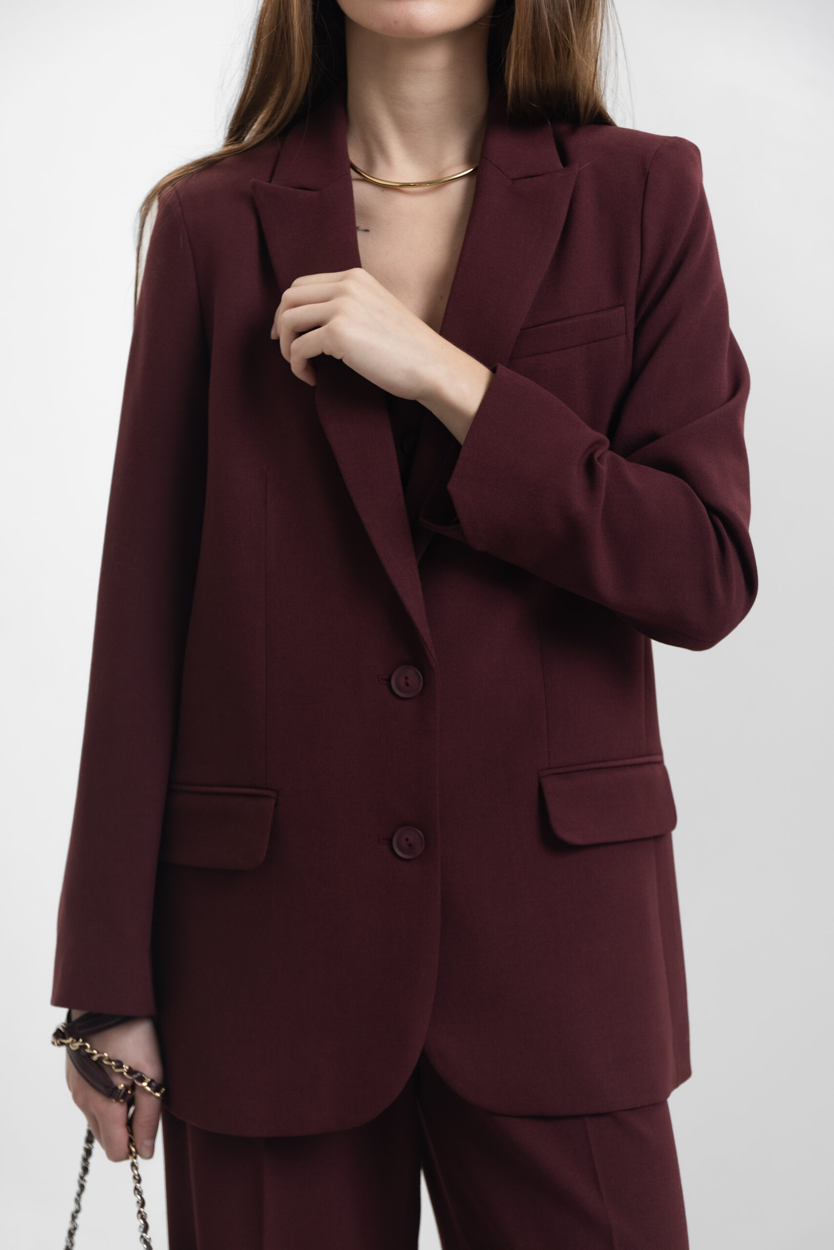 Класичний однобортний піджак кольору бургунді — витонченість у кожній деталі