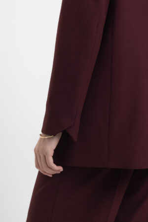 Модель виконана у класичному прямому крої з однобортною застібкою, що підкреслює стриману елегантність. Глибокий колір бургунді додає шарму та вишуканості, дозволяючи легко поєднувати піджак з іншими елементами гардеробу: як з брюками або спідницями, так і з джинсами.