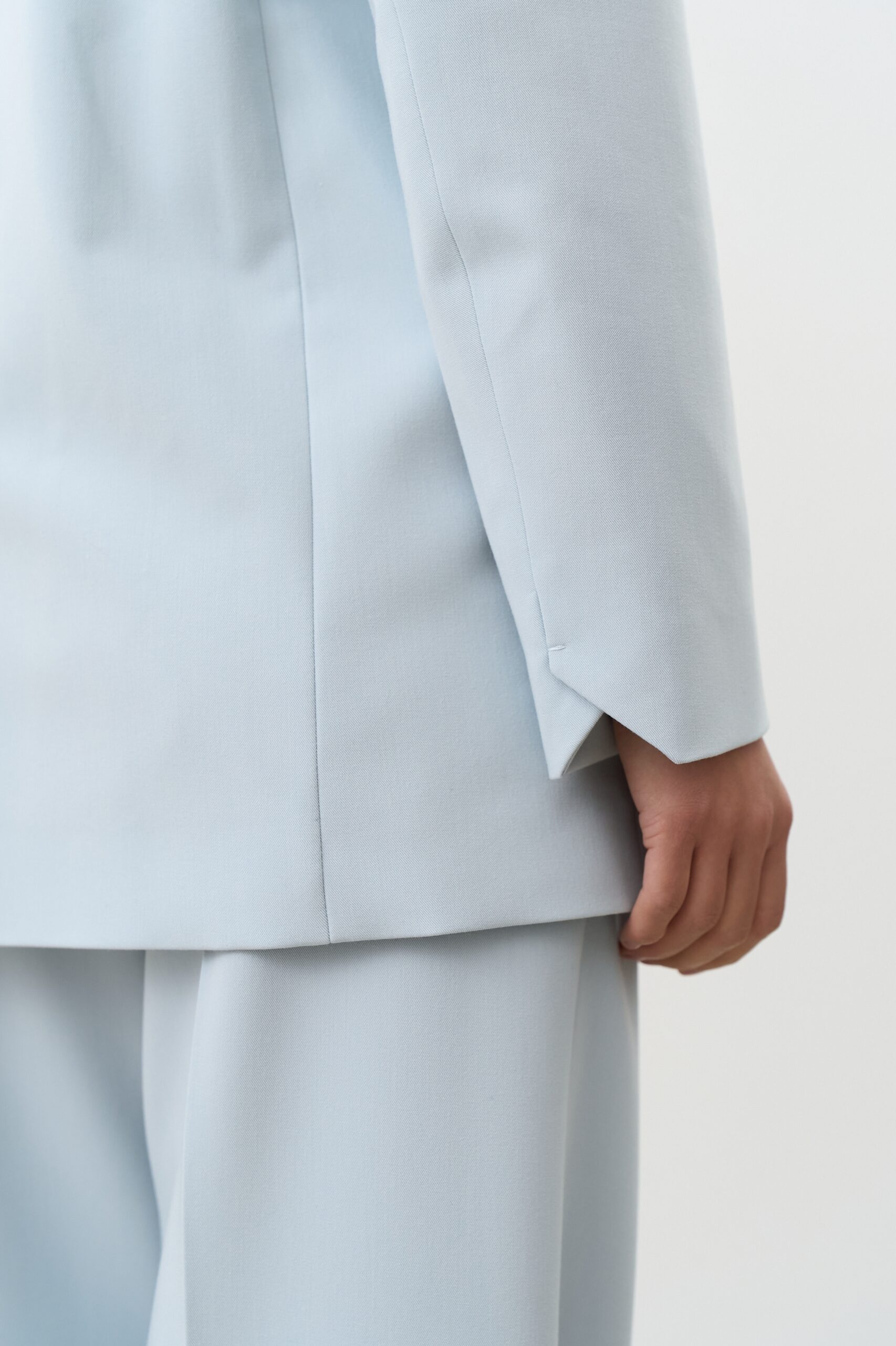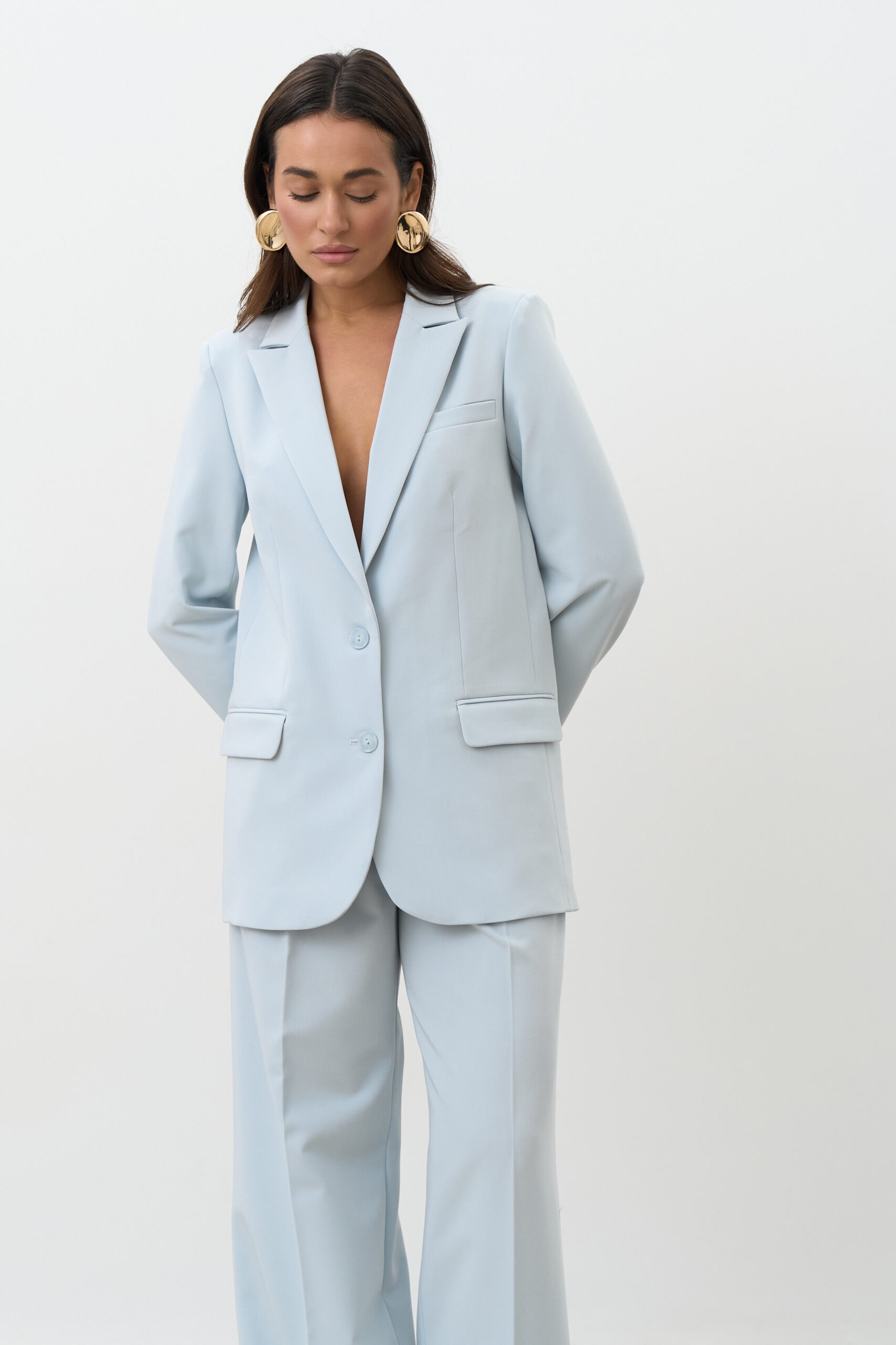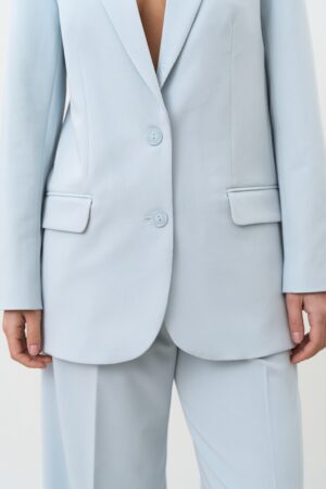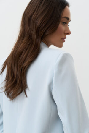 Небесний колір — це трендовий і водночас позачасовий відтінок, який освіжає образ і додає йому легкості. Він чудово поєднується з білим, молочним, бежевим, сірим, темно-синім і пастельними тонами. Однобортний піджак небесного кольору стане стильним акцентом у вашому гардеробі та підкреслить індивідуальність.