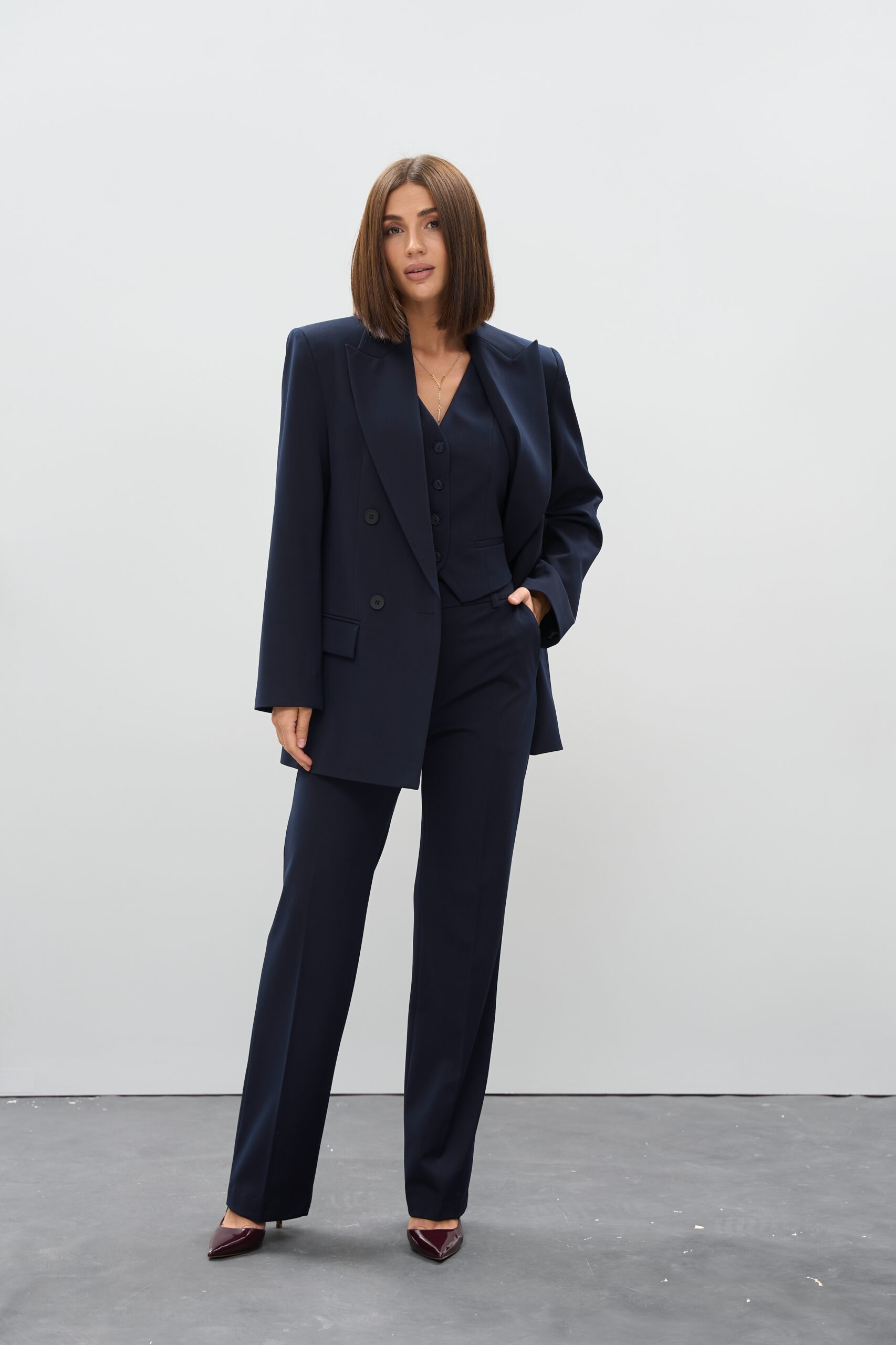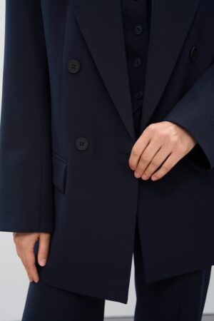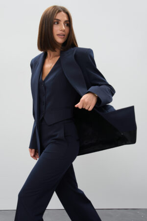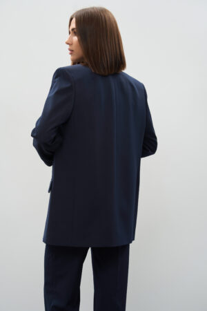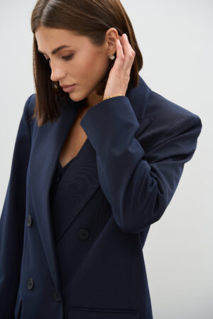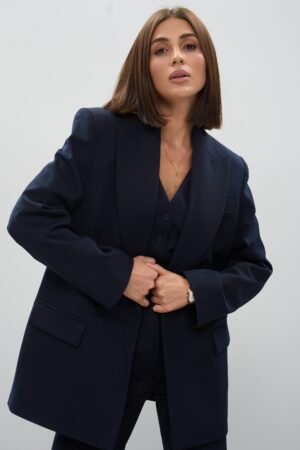 Коли базовий гардероб потребує оновлення, але хочеться не просто «класики», а чогось зі смаком — синій піджак з акцентними плечима стає ідеальним вибором. Цей відтінок — глибокий, благородний, не банальний — підходить як для офісу, так і для smart-casual стилю. Він вирізняється серед стандартного чорного, але залишається стриманим, універсальним і багатогранним.