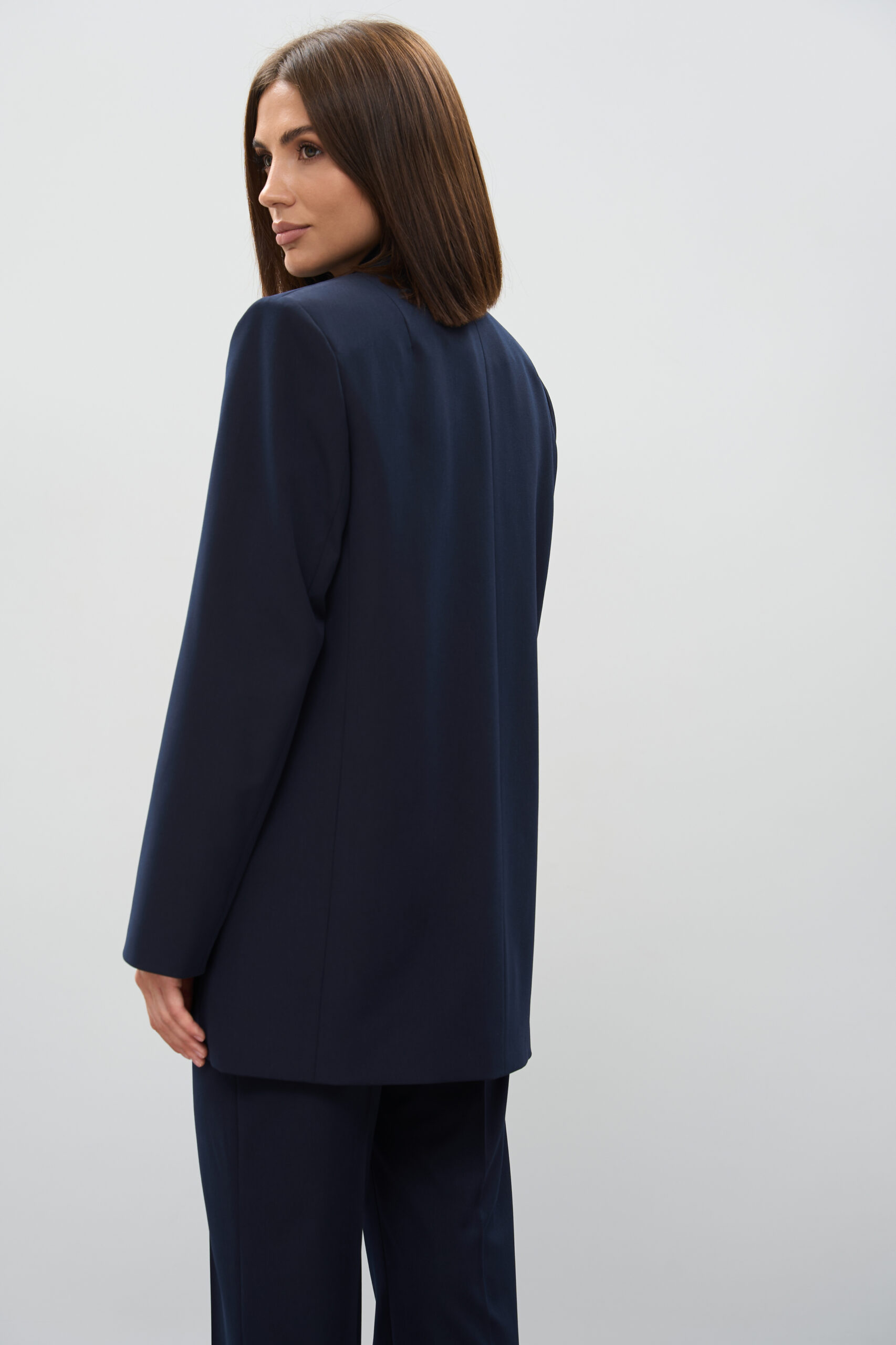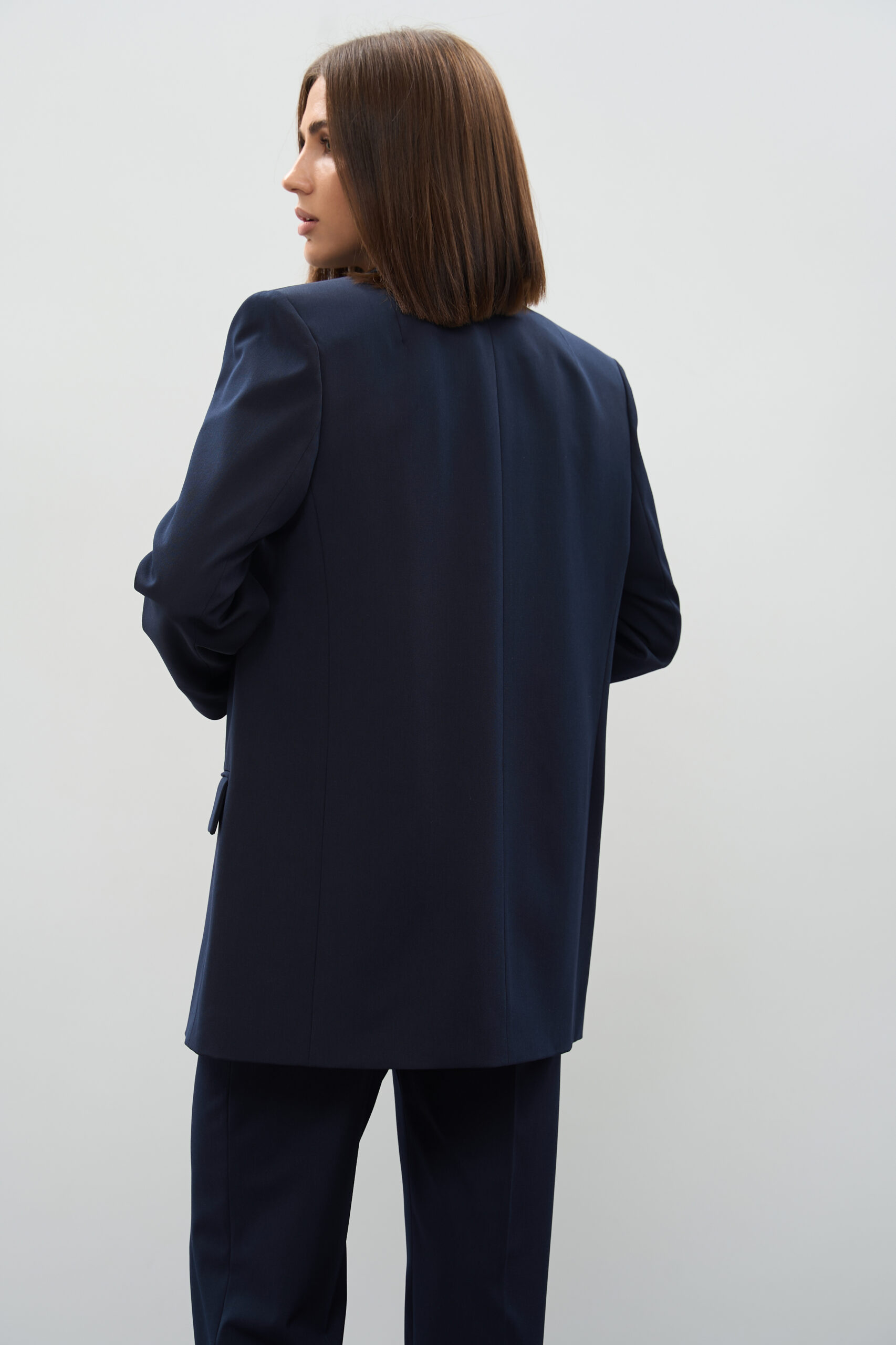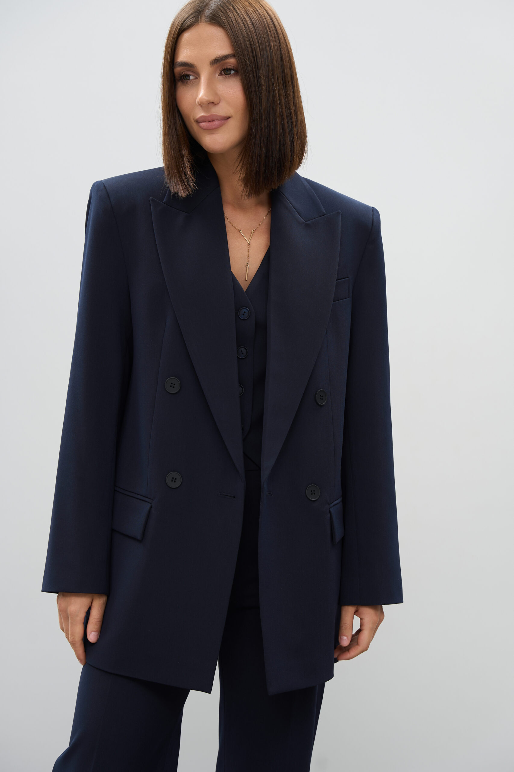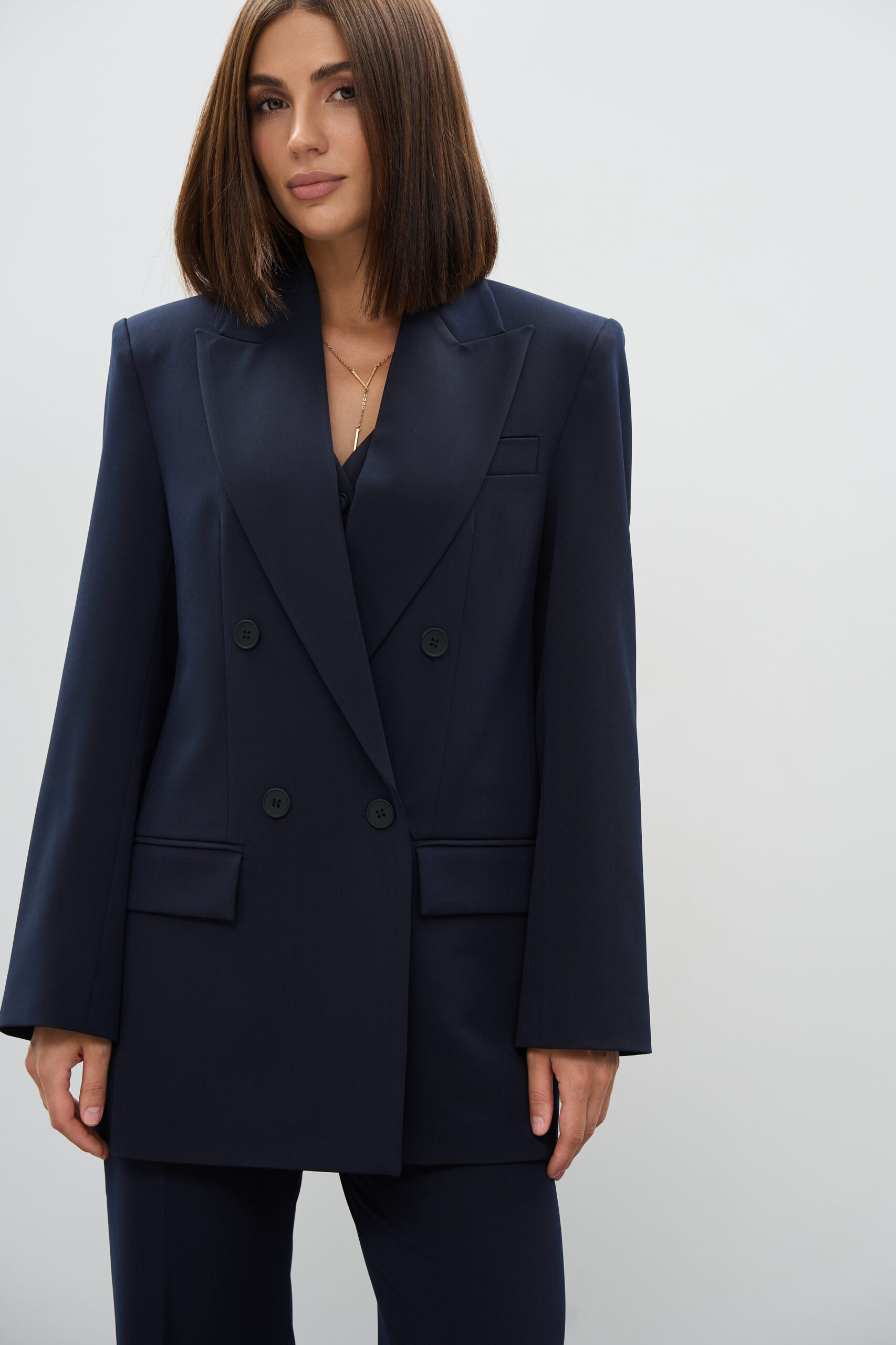 Синій жіночий піджак з акцентними плечима — колір впевненості та інтелігентного стилю