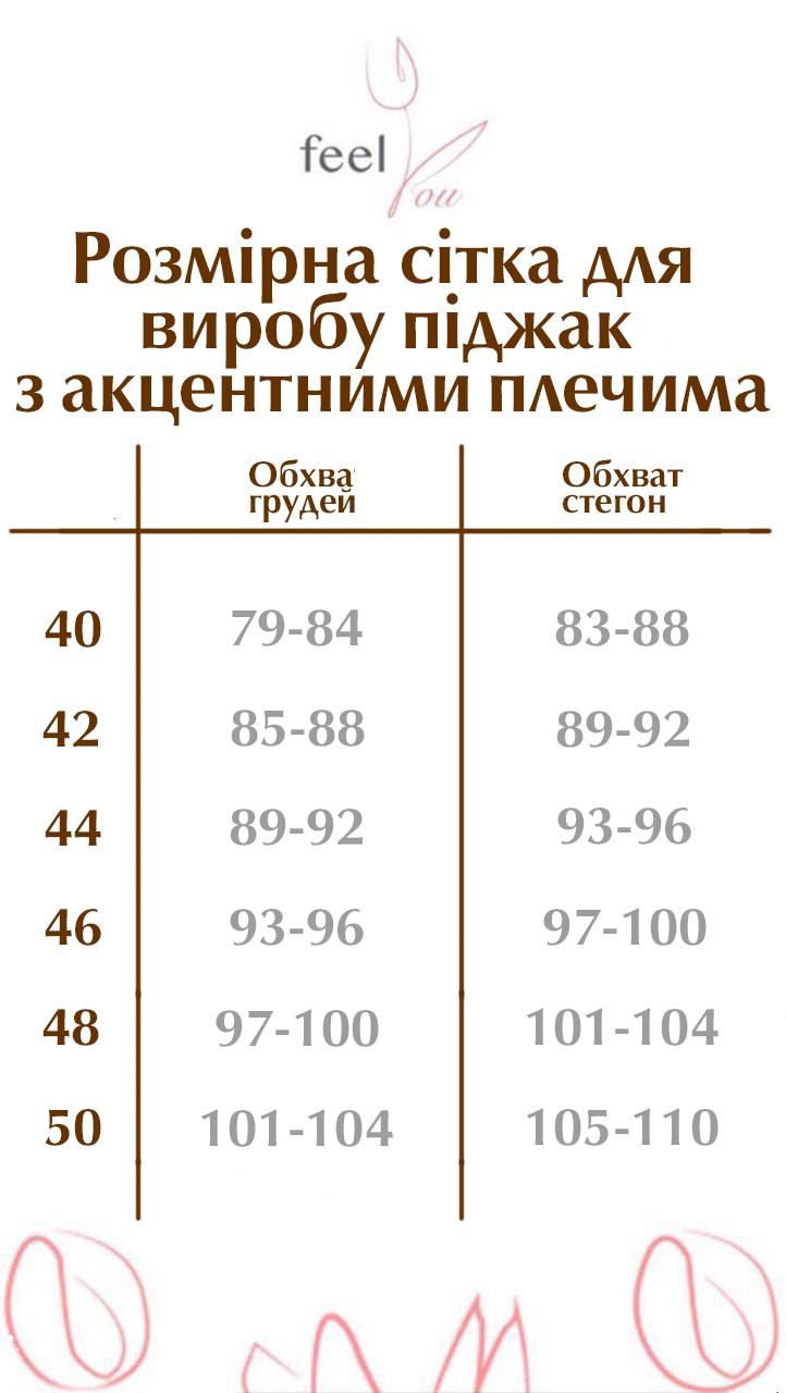 Піджак доступний у розмірах: 40, 42, 44, 46, 48, 50.